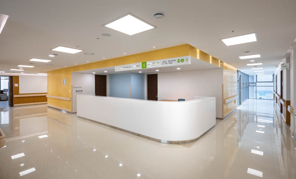 The shape of the hospitalization room plan is designed to allow natural lighting and ventilation from the outside by taking a ㄷ-shaped arrangement centered on the patio.