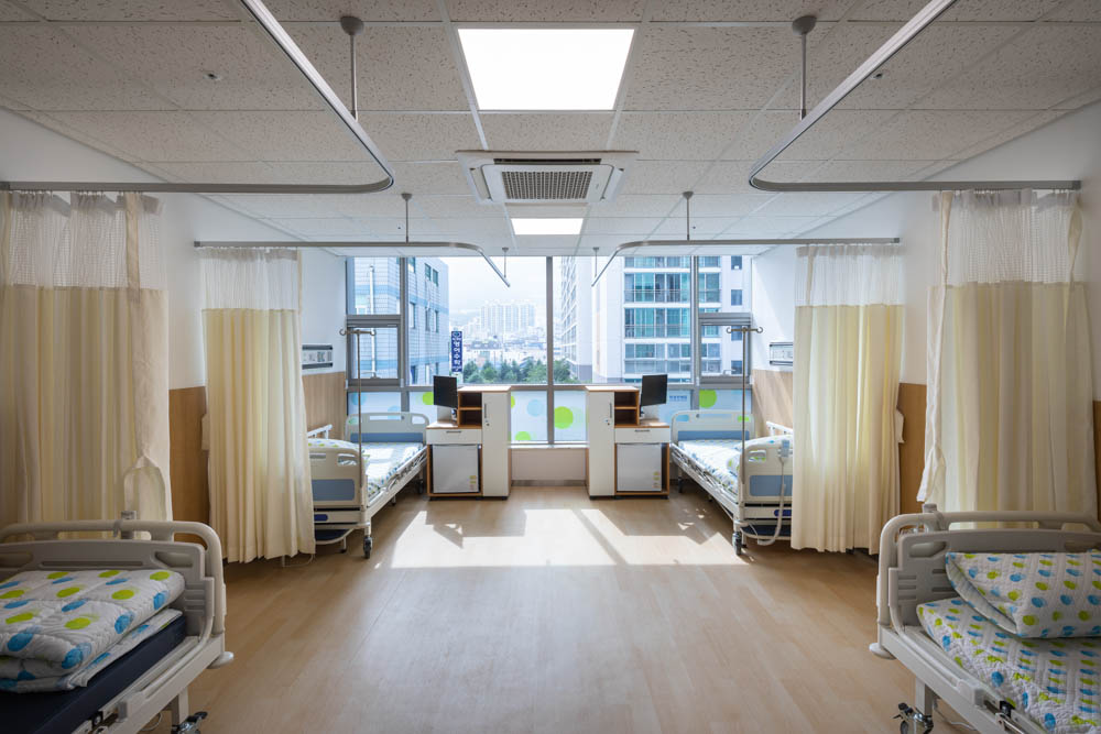 The shape of the hospitalization room plan is designed to allow natural lighting and ventilation from the outside by taking a ㄷ-shaped arrangement centered on the patio.