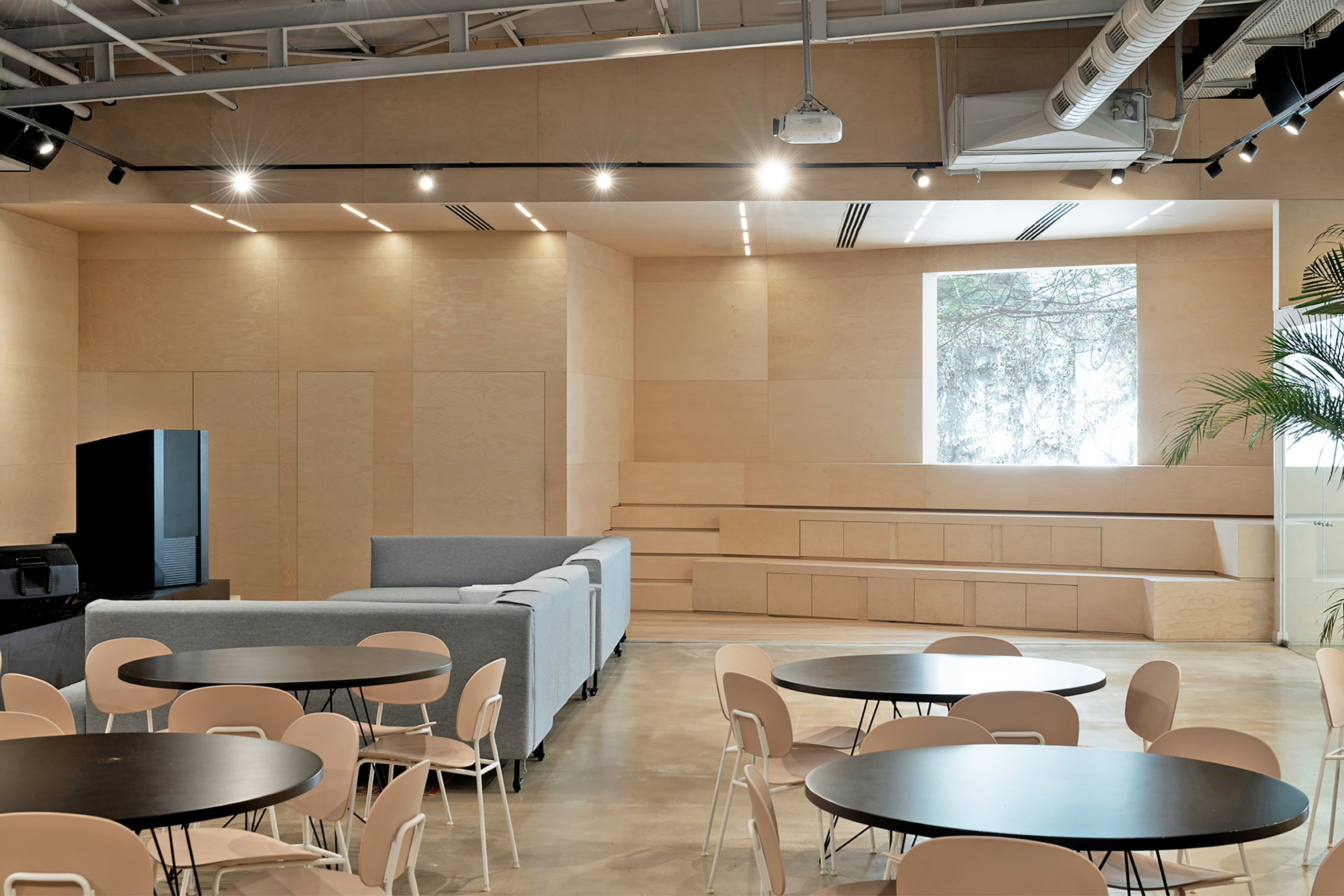 Playstudios offices, planned and designed by RUST Architects, are located in a complex of three industrial buildings in south Tel Aviv, which served as an exhibition and events hall and an old sewing workshop of Kastiel, Israel's oldest high-end furniture company. Unlike most of new high-tech offices in Tel Aviv, which are located in new towers, the planning required the design of an existing industrial complex, constructed of beams, concrete pillars, and wide windows that are open to a large inner courtyard with its old tree and climbing plants that are synonymous with the complex.