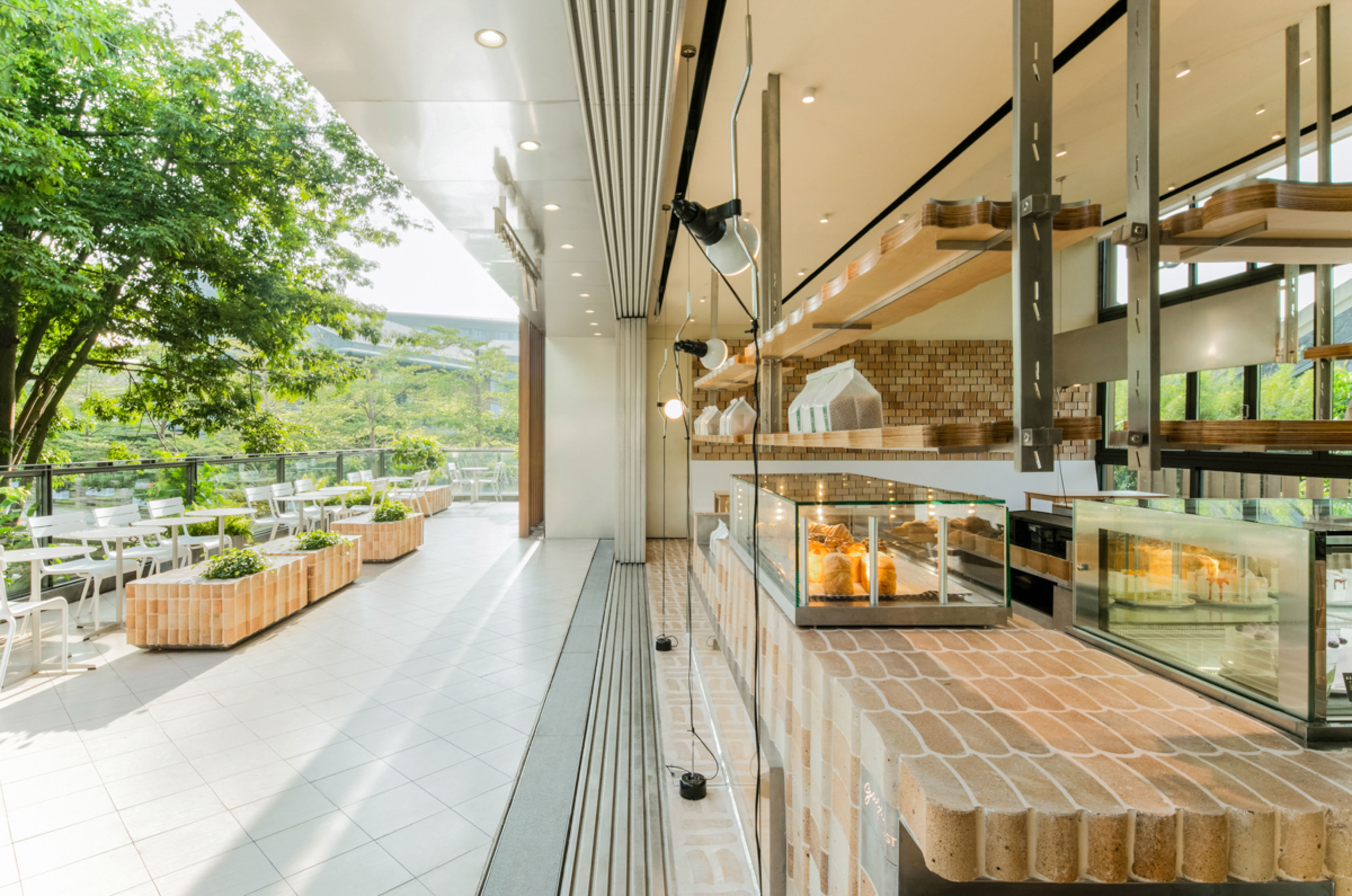 선전시의 쾌적한 기후 덕분에 전면의 미닫이문으로 변한 외부 파사드도 독특한 공간 경험에 기여했다. 맞춤형 도어는 날씨에 따라 슬라이딩 방식으로 얼마든지 열고 닫을 수 있어 실내와 실외 공간의 경계가 흐려진다.