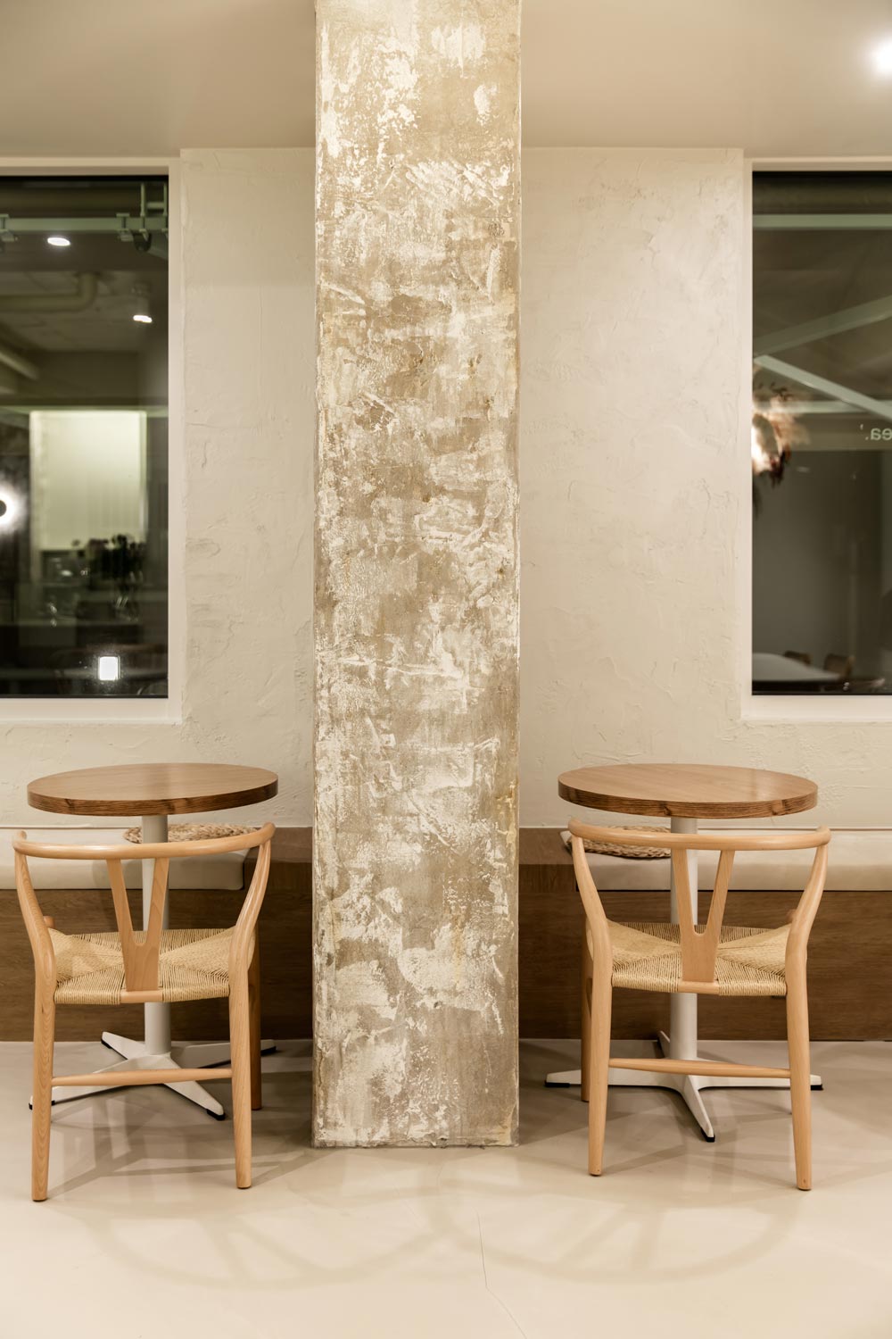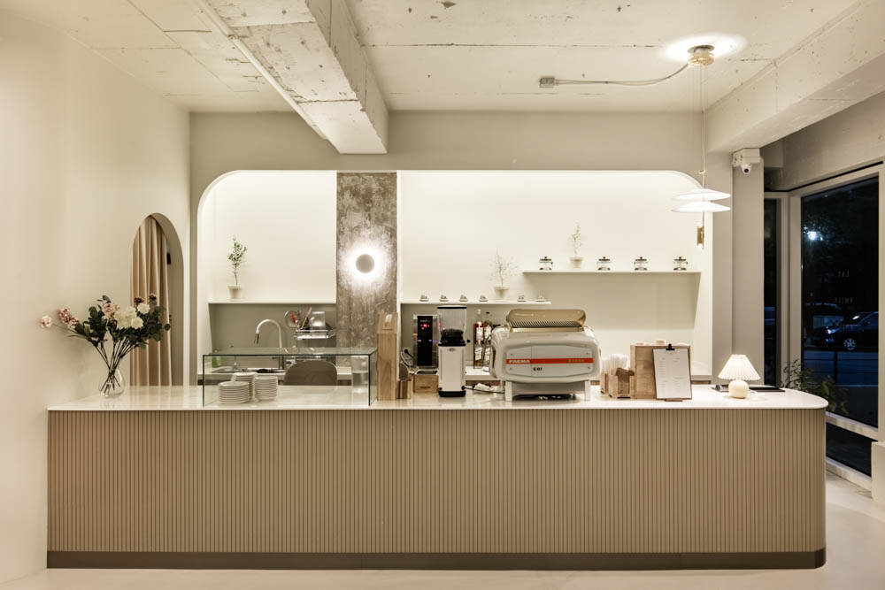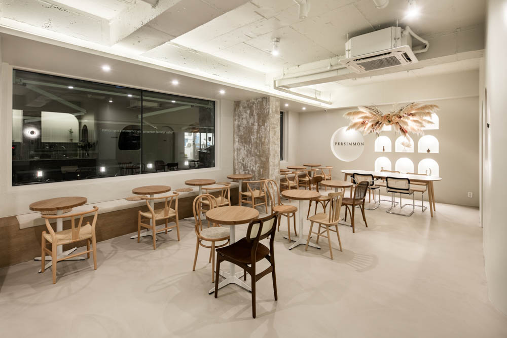 Settled in an alley of a residential complex in Ilsan, there is Persimmon Coffee, where charming persimmon trees can be seen through a large window. Persimmon Coffee’s name was influenced by the persimmon trees on the terrace, and it is a space designed to convey a comfortable feeling within a natural and nature-friendly space. In order to highlight the nature-friendly and comfortable feeling, an earthy-style interior that reflects the colors cream, sand, beige and the colors of earth was set as the design concept.