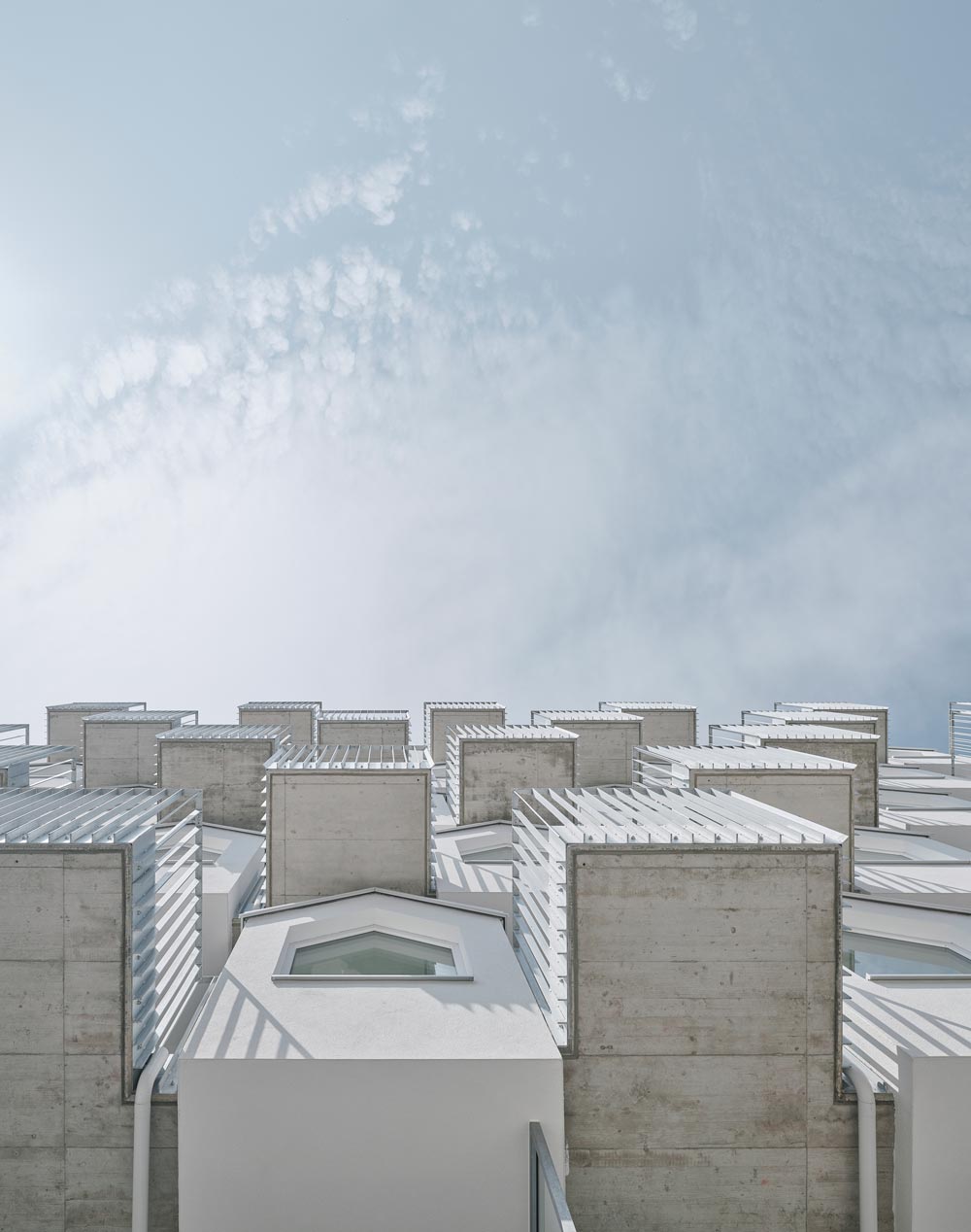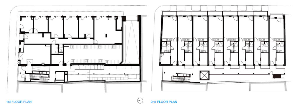 Following the client’s brief of modern temporary living spaces, these affordable micro-apartments offer maximized spaciousness and comfort. Each apartment is accessible via an arcade and external staircase, and features a balcony. The compact floor plan consist of a generous main corridor, a bedroom area, sanitary facilities, and a living space with a pitched roof oriel and a balcony. Minimising the adjacent rooms results in a bright and generous living space that meets the dynamic needs of the future residents.