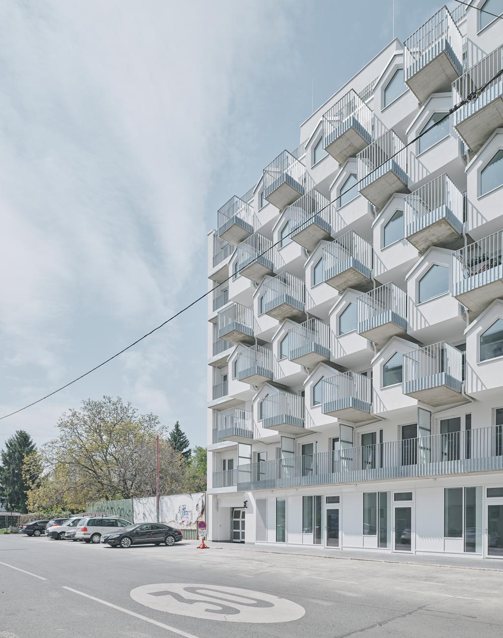 오스트리아 빈 도심에 50세대의 비즈니스 공동주택과 6개 사무 공간이 있는 건축물이 들어섰다. 각 세대는 공동주택의 기본적인 공간에 따라 배분되어 배치, 최적의 채광 조건을 가지도록 모든 세대들은 남동쪽을 향하여 배치됐다. 보다 조용한 거리 쪽으로 향하고 있기 때문에 구드혼스트라세 공동주택은 자연적인 조건만으로도 소음을 완화한다. 이러한 경제적, 공간적으로 합리적인 소규모 공동주택은 거주자들에게 최대한의 공간감과 편안함을 제공해 주기 위한 구성을 가진다. 각 세대는 아케이드와 외부 계단을 통해 접근 가능하며, 돌출된 발코니를 가지고 있다. 각 단위세대는 넓은 메인 복도, 침실 영역, 위생 시설, 그리고 돌출된 박공 지붕과 발코니가 있는 생활공간으로 구성된다. 근접한 실들을 최소화하는 것은 미래 거주자들의 역동적인 수요를 충족하는 밝고 넓은 생활 공간으로 나타난다. 구드혼스트라세 공동주택의 파사드는 전통적인 빈의 슈레베르가르텐(작은 정원을 가진 주택)이 적층된 것처럼 보인다. 이는 주로 상업용도가 특징인 인근 지역의 도시개발적 관점에서 강한 존재감과 건축적 특징을 드러낸다.