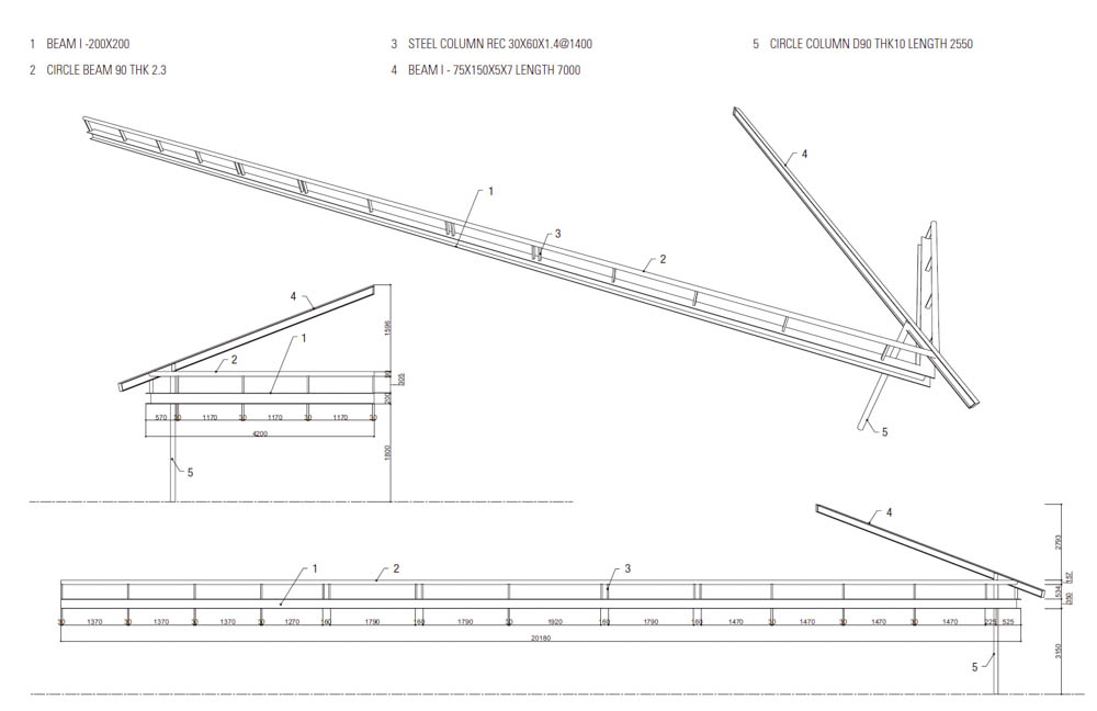 The purpose of this project is to convert an existing building with two floors above the ground and an attic to a rental apartment. Rented apartments had to use space without wasting it for economy. In addition, efforts were made to create a green space while being easy to construct. So we used lightweight structures to change the internal space; redistribution of uses: entrances, stairs; and light structures help to save costs in terms of both materials and construction labor. The main materials are iron frame, cemboard plate, iron wall, glass, all of which create flexibility and ease of construction for renovation works. The colorful bungalows rotate in different directions to create a strong movement, which contributes to covering the old concrete columns and structures of the house. The 2nd and 3rd floors have 6 rooms, each with 1 bungalow block, it is the neat integration of the functions into one integrated block: bedroom, wardrobe, kitchen.