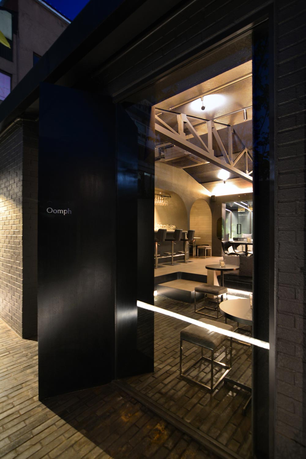 OOMPH는 대로변에 공간을 노출하여 많은 고객들을 유입하기보다는 비가 내리는 밤, 고즈넉한 분위기로 사색에 잠길 수 있는 아지트를 만들어 아는 사람만 찾아올 수 있는 공간, OOMPH라는 단어의 의미가 그러하듯 특별하고 은밀한 매력을 가진 공간, 와인바로 존재할 수 있도록 디자인 되었다.
