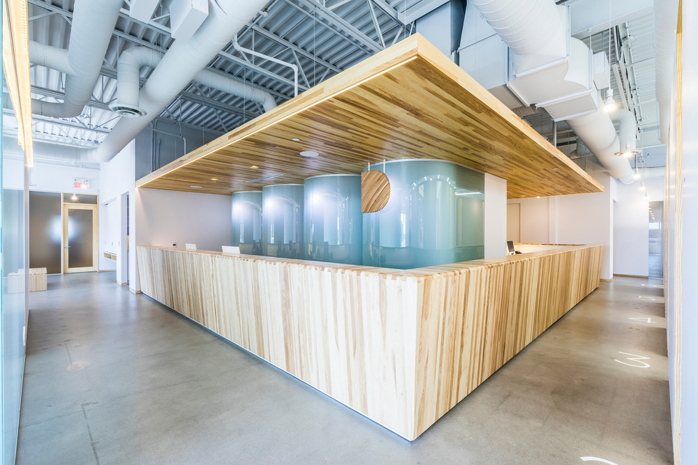 Dr. Brassard wants her patients to relax as soon as they enter the clinic. They should feel an uplifting sense of peace and calm during their visit rather than being weighed down by stress and discomfort. At Clinique D, the waiting room offers the most breathtaking view of the entire space: the whole stretch of Avenir Boulevard. People are more patient, more understanding when they are comfortable and well looked after. At the foot of the waiting room chairs, custom-built solid ash coffee tables mirror the look and feel of the reception desk. At the bottom of the hall closet is a wooden shoe rack, inviting patients to take their boots off as soon as they walk in. Further in, an alcove where washrooms are located also has a hot/cold water dispenser for anyone to pour themselves a cup of tea while they wait for their appointment or treatment.