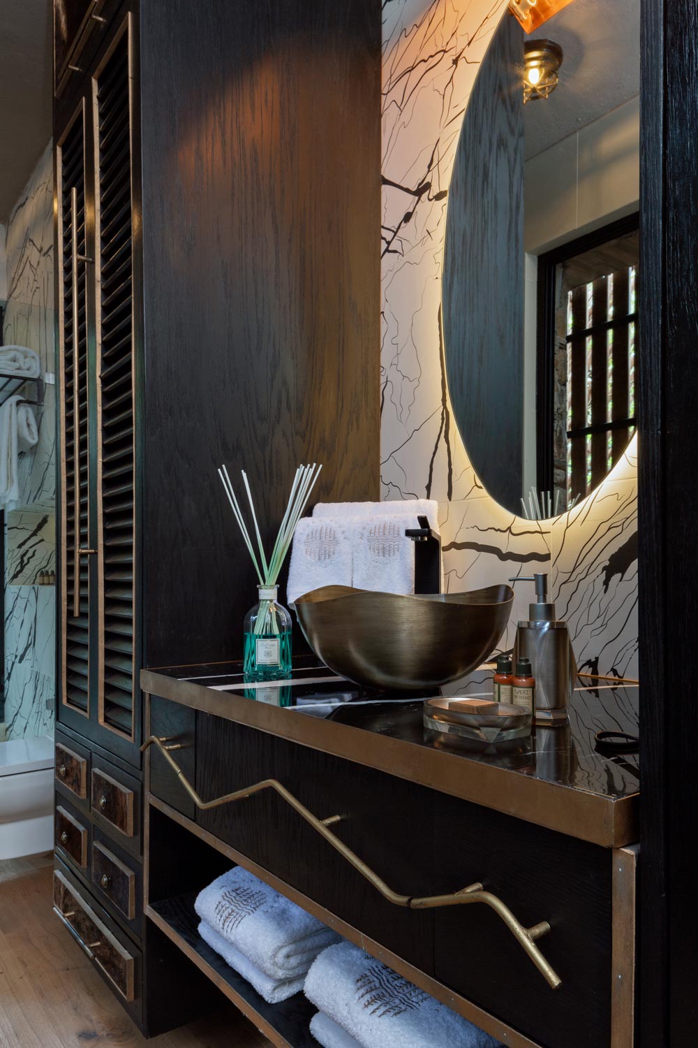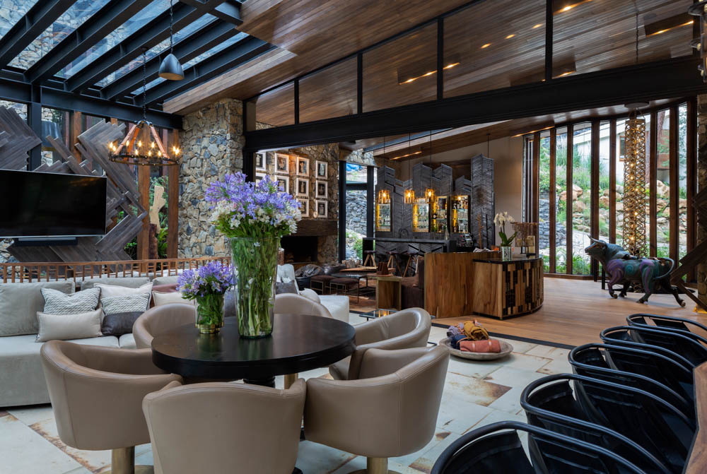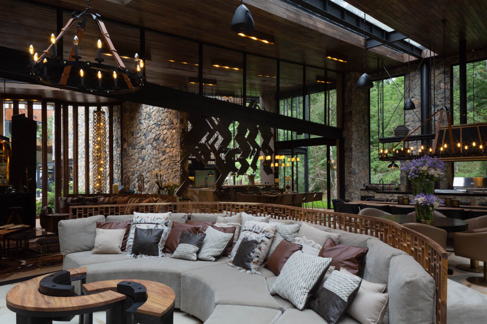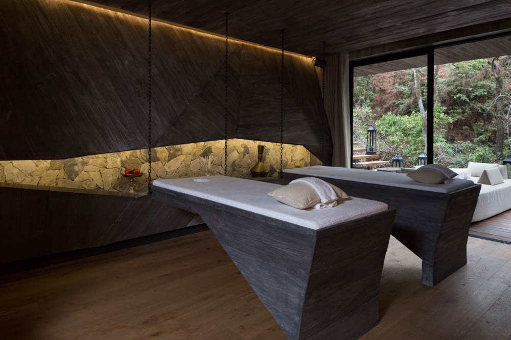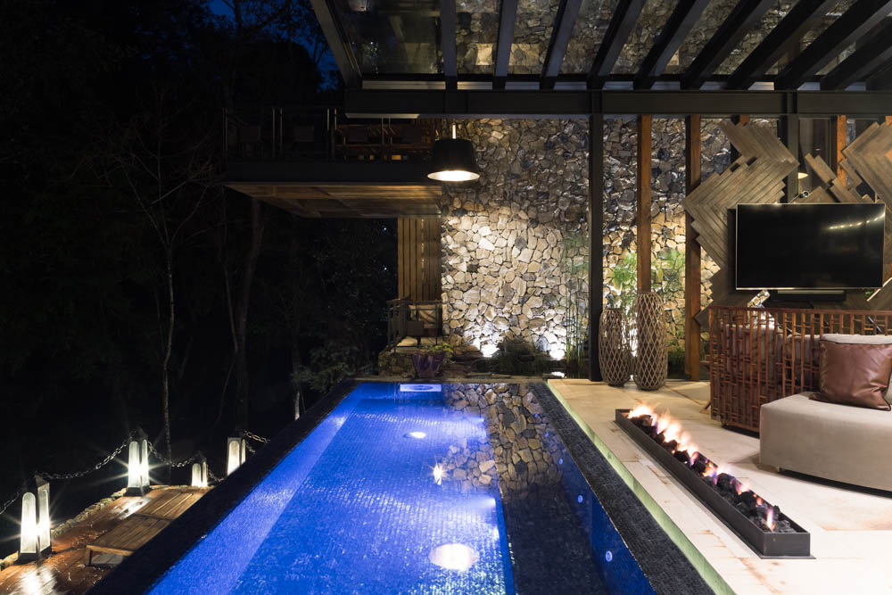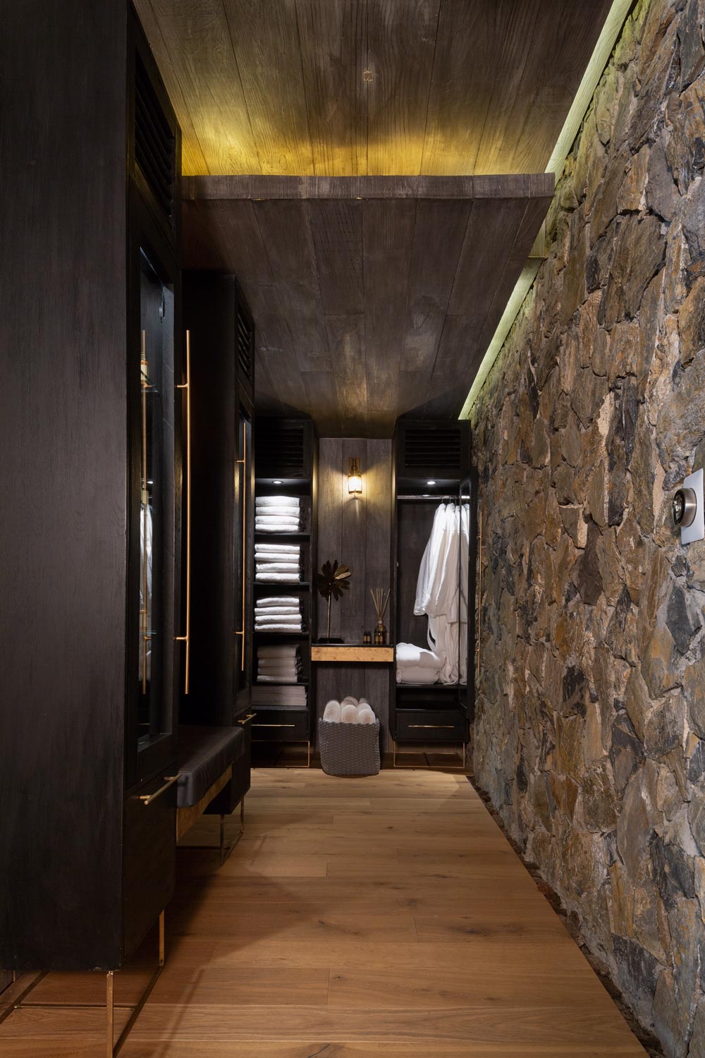 The private area, a three-level section, contains 5 bedrooms, each with its own bathroom and balcony created to enjoy alone time facing the river. On the lower level, there is a full spa with sauna, Hamman and massage area. At the turn of every corner, you find interior gardens that intertwine open and closed spaces.