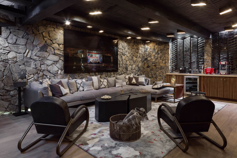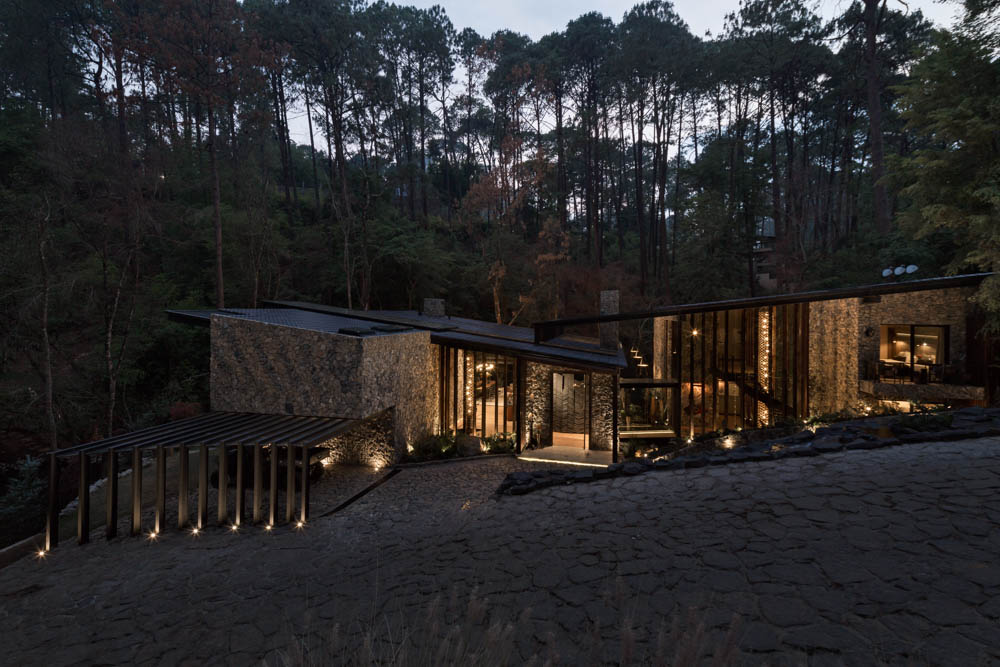 River House is a 1,200 square meters construction designed in a wooded area of Valle de Bravo. This project is composed of two spaces, one private and one open divided by a river that starts at the main entrance and surrounds the entire house. This grand project harbors an underground wine cellar with the ideal temperature and lighting, it has a capacity of 400 bottles. Next to it, we can also find an underground high-tech multimedia room.