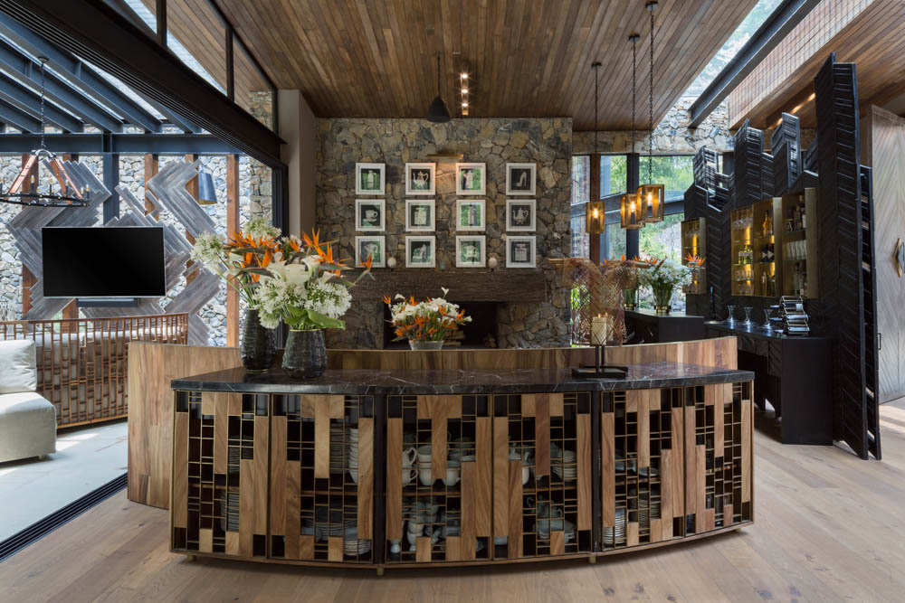 테라스에는 14인용 식탁을 마주보는 돌오븐, 바이킹 그릴, 라운지, 수영장, 굴뚝 등이 갖춰져 세계 최고의 주방으로도 손색이 없다. 실내 주방과 6미터 높이의 천장은 정원, 강, 숲에 면한 철제·유리 구조로 둘러싸인 조식실과 실내 12인승 식당으로 서비스를 제공한다. 저녁 식사 후에는 집 전체를 따뜻하게 하는 나무 벽난로가 있는 안방에서 쌀쌀한 저녁시간을 보낼 수 있다.