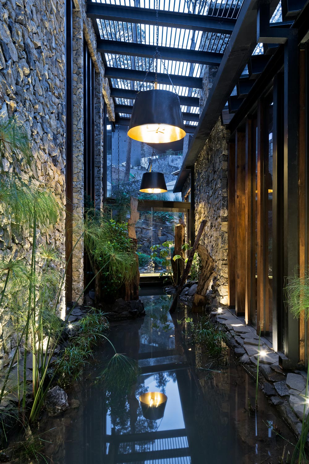3층에는 개인 침실 5개가 있으며 각 침실에는 강을 바라보며 혼자만의 시간을 즐길 수 있도록 전용 욕실과 발코니가 있다. 낮은 층에는 사우나, 터키식 목욕탕 및 마사지 공간이 있는 풀 스파가 구성되었다. 모퉁이를 돌면 열린 공간과 닫힌 공간이 뒤엉켜 있는 실내 정원이 있다.