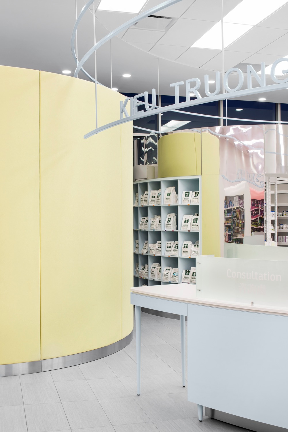 공간과 제품을 단순화하고 상품화 요소를 최적화하는 데 수개월에 걸친 연구와 토론이 필요했다. 이는 심플하면서도 다채롭고 세련된 공간을 원하는 약사와 디자이너의 바람에서 비롯됐다. Kieu Truong은 고객 경험을 개선하기 위해 배너를 통해 매장을 인간답게 만들 수 있다고 믿는다.