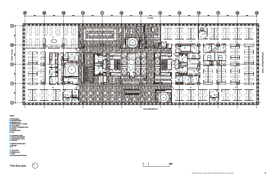 Structured in five phases of construction, this complex project was carried out in a dense urban context while remaining in function. It represents an exemplary collaboration between the tenant, to whom the project is addressed, the owner, responsible for the integrity of its facilities, and the team of architects. The latter proposed a reversible project, respectful of modern heritage and reflecting the values of BDC, for which LEED Gold certification was obtained.