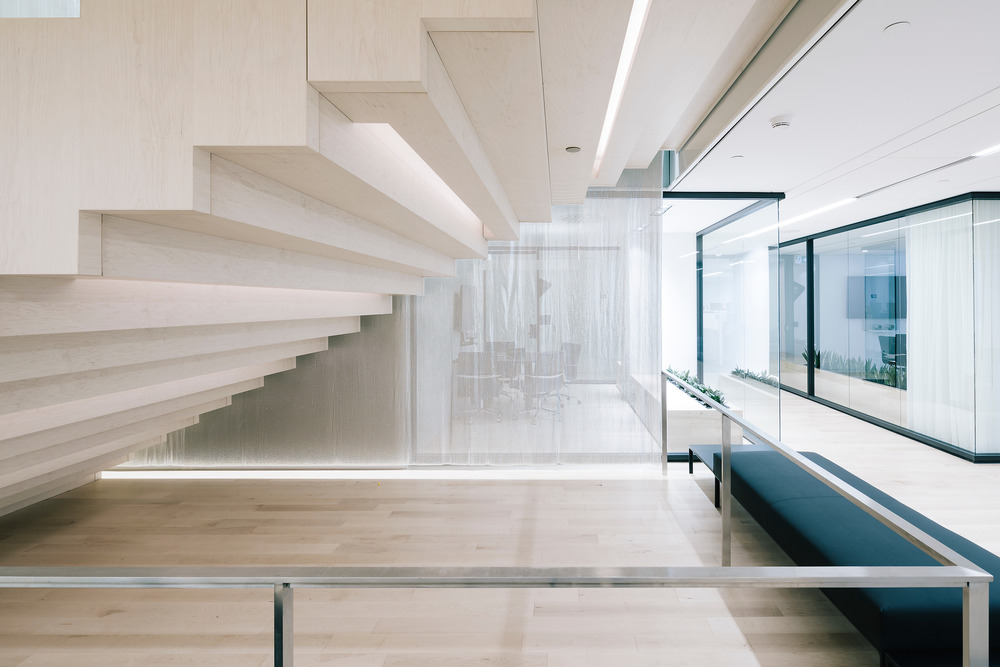 The architectural concept embodies the commercial competitiveness of BDC, for which the well-being of its employees is the real engine of its productivity and growth. The definition of a socio-spatial structure based on different degrees of interpersonal interactivity allows everyone to navigate between fortuitous exchanges and formal meetings by department, group, or individual work. The project focuses on spatial transparency, immersion in a cityscape rich in natural (St. Lawrence River and Mount Royal) and urban landmarks, and the use of symbolically significant Canadian materials such as maple and aluminum to ensure both the durability and the perennity of the design.