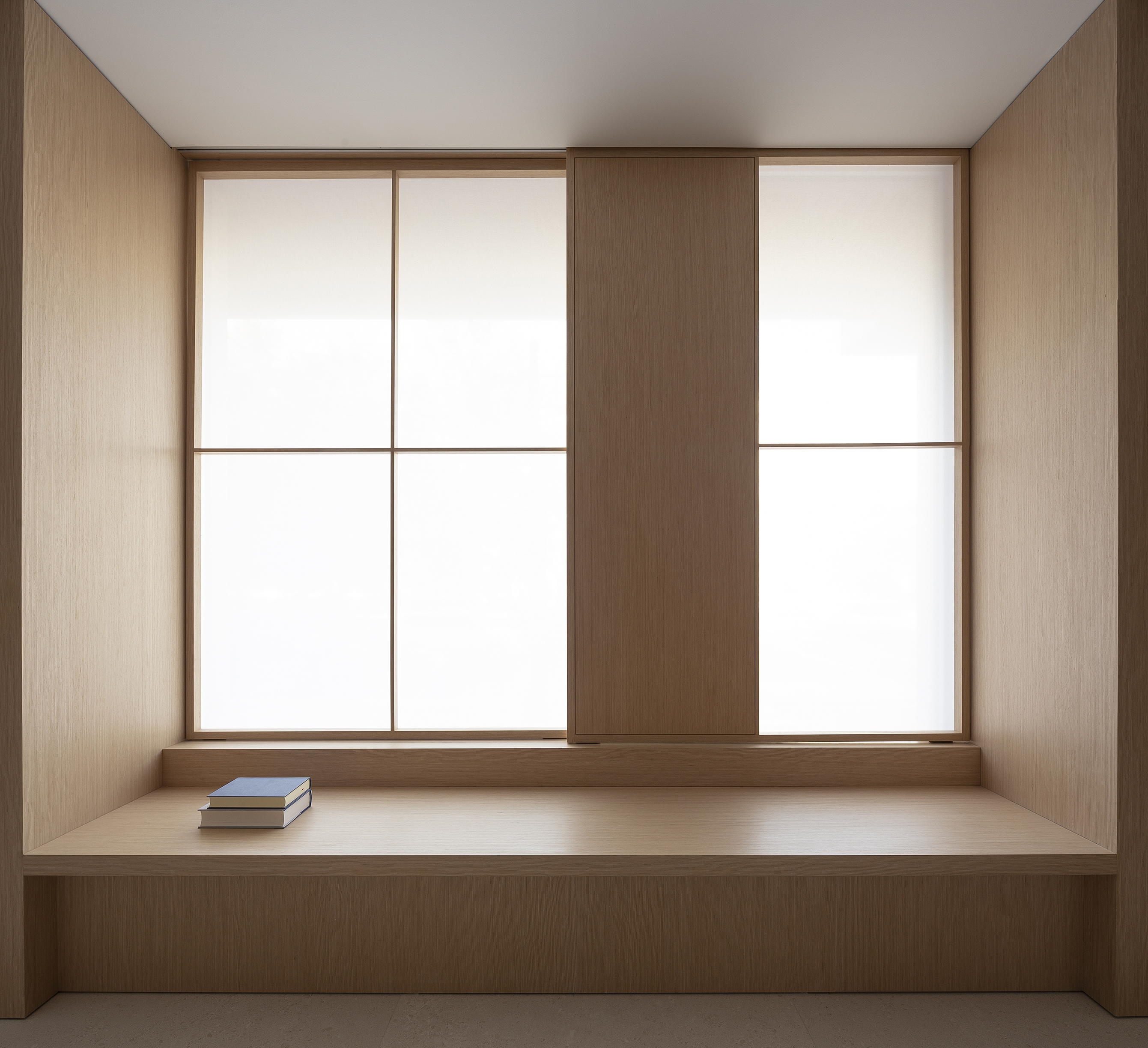 The design is marked by an atypical waiting area placed facing the treatment rooms, in which a large bench runs longitudinally the interior facade. Each of the seating areas is framed with a composition of sliding panels that run as screens over windows to bring light inside in a soft way. Also in the privacy of each room there is a patient waiting bench.