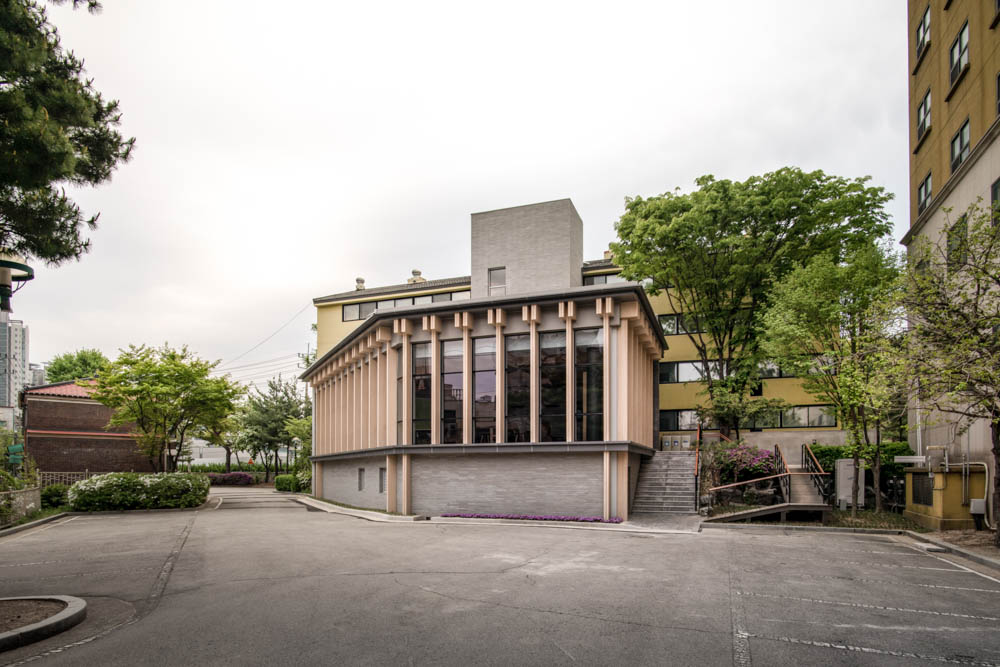 성균관대학교 글로벌라운지는 외국인 교수들의 숙식 공간에 라운지 겸 간단한 식사를 할 수 있는 공간을 증축하는 프로젝트다. 라운지 바로 뒤편에 있는 게스트하우스는 외국인 교수들에게 한국에서의 새로운 집이며, 이 라운지는 그들에게 오랫동안 기억될 성균관대학교의 이미지로 남게 된다. 건축가는 새롭게 증축되는 공간의 기능적인 부분을 충족하면서도, 외국인 교수에게 한국의 인상을 남기는 공간으로 기억되기 위하여 한국건축의 요소들을 사용했으며, 현대적으로 재해석한 한국건축의 처마, 기둥을 형태적으로 변형했다. 이 요소들은 반복적으로 사용되면서 세세한 단위, 작은 틈에서 느껴지는 한국적 아름다움을 자아낸다. 이 조합이 주는 공간적 아름다움은 증축의 단순함을 넘어선다.