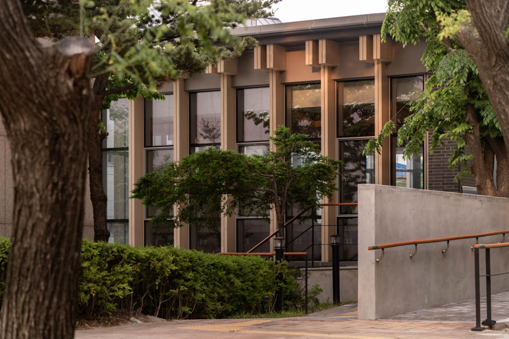 The SKKU Global Lounge is a project to expand the space that is used as a lounge and for light meals within the accommodation space of the foreign professors. The guesthouse, which is the existing building, is a new home for foreign professors, and will remain as an image of Sungkyunkwan University that will be remembered for a long time. The newly expanded space not only fulfills the functional aspects, but elements of Korean architecture were also used so that it can be remembered as a space that leaves an impression of Korea on foreign professors. The architect transformed the form of the eaves and pillars of Korean architecture reinterpreted in a modern way. These elements are repeatedly used, creating a Korean beauty that is felt in the detailed units and small gaps. The spatial experience, where the beauty of this combination is enjoyed at the same time, goes beyond simple expansion.