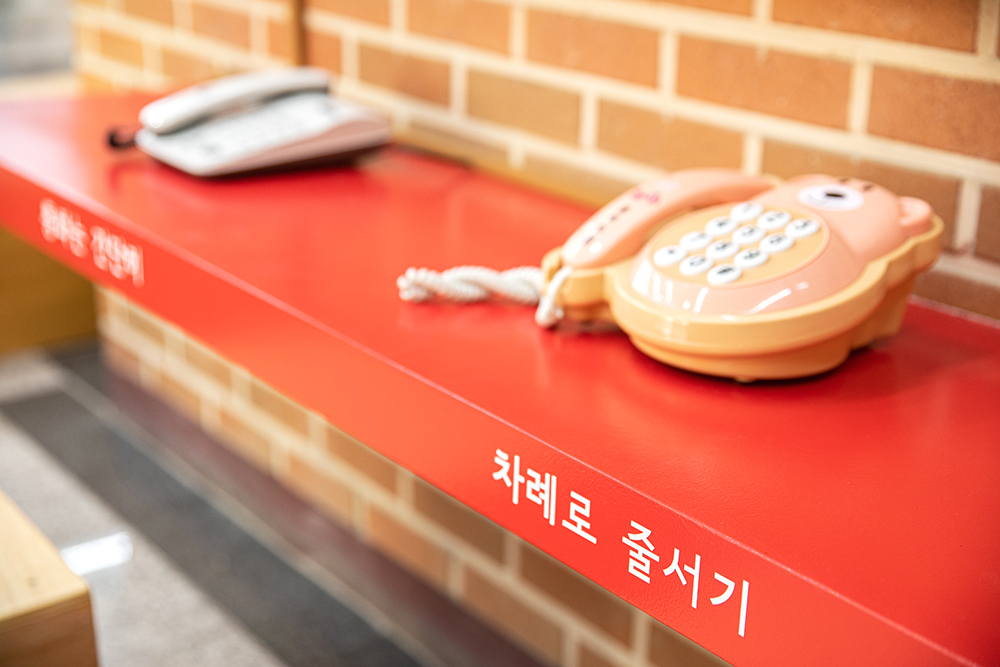 아이들이 전화를 거는 빨강 전화기 선반, 벤치 앞에 놓여진 파랑 테이블, 여러명이 둘러앉거나 누울수 있는 노랑 평상, 계단하부의 초록 독서테이블 그리고 오르락내리락 공간 내부의 하늘색, 계단 하부의 초록색이 아이들 특유의 발랄함을 담아내길 바란다.
