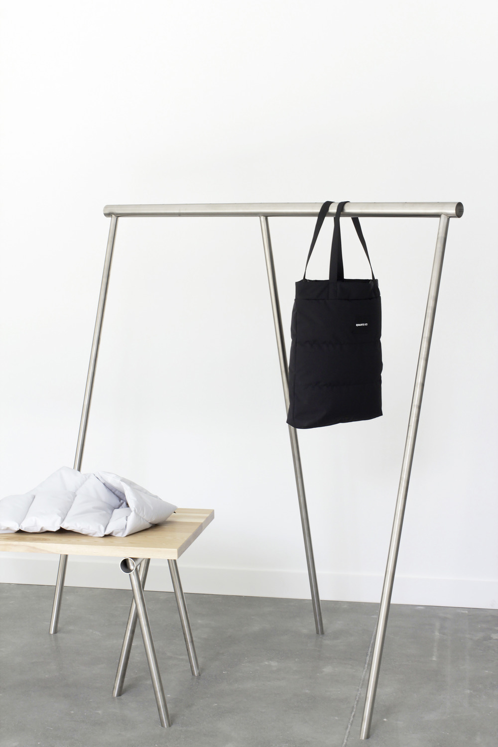 공간의 한쪽에는 작업실이 있다. 거리에서 볼 수 있으며 브랜드 제품이 현지에서 제조된다는 사실을 부각시킨다. 반대편에는 Blanchette Architectes가 개발한 조명, 거울, 격자 및 스크린과 Rainville Sangaré의 맞춤 가구가 상호 작용하는 부티크가 있다. 벽감의 코트 디스플레이로 구두점을 이루는 거울 벽은 공간에 대한 대안적인 인식을 제공하고 이중 반사는 고객에게 다양한 관점을 제공하여 옷을 입어볼 때 유용하다. Rainville Sangaré는 고귀한 재료 및 제조 공정에 대한 전문성을 사용하여 제품의 프레젠테이션과 고객이 추구하는 물리적, 시각적 편안함 사이의 조화를 만든다. 가구 외에도 스튜디오는 벽에 부착할 필요가 없는 스테인리스 스틸 기둥 시스템을 설계했다. 대신 마찰과 장력이 이 기둥을 제자리에 고정시킨다. 작업 수행의 정확성을 보여주기 위해 하드웨어 및 고정 부품이 보이는 상태로 남아있다. 현지에서 공급되고 FSC 인증을 받은 물푸레나무속(Ash)는 질감이 다른 재료와 대조되고 공간에 따뜻함을 더해준다.