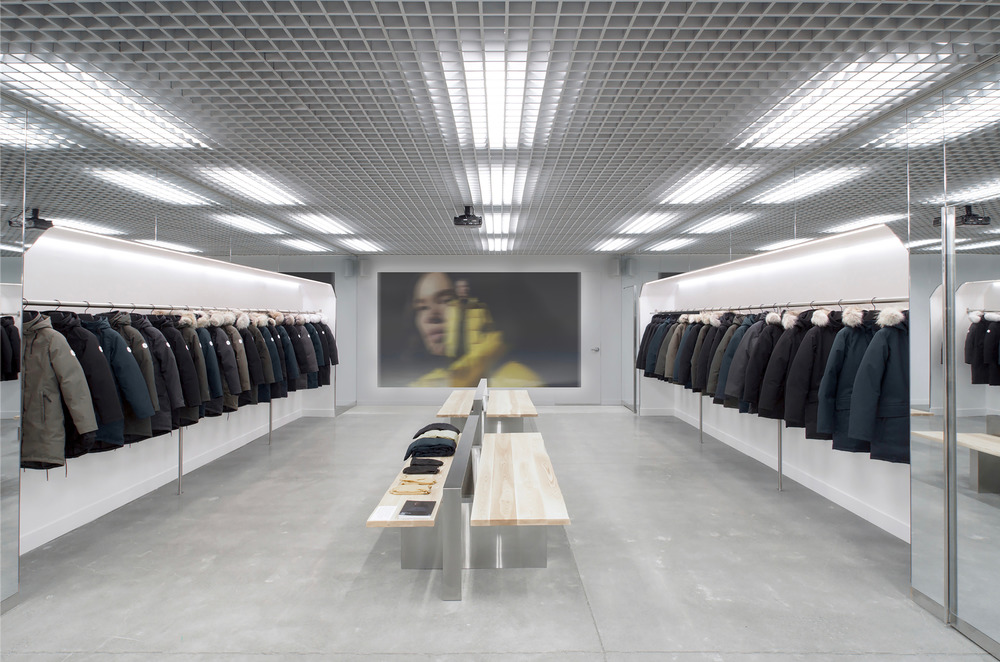 Quartz Co., a company specializing in Canadian-made winter jackets, enlisted Blanchette Architectes, Rainville Sangaré, and A+ to develop its first retail space located at 5445 avenue De Gaspé, in Montréal. The furniture was designed and built by Rainville Sangaré, while Blanchette Architectes was responsible for space design. The two firms worked in conjunction with the marketing team at Quartz Co. as well as the project-management team at A+.