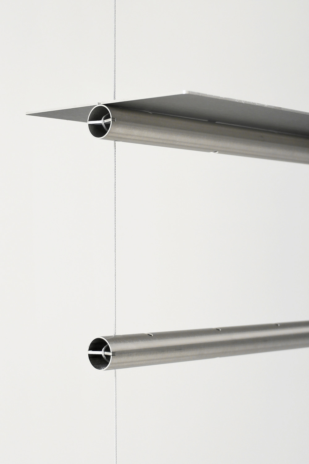 Rainville Sangaré used its expertise in noble materials and manufacturing processes to create harmony between the presentation of products and the physical and visual comforts sought by the customer. In addition to the furniture, the studio designed a system of stainless-steel poles that don’t need to be attached to the walls; instead, friction and tension hold them in place. Hardware and fastening pieces were left visible to demonstrate the accuracy with which the job was carried out. Ash – locally sourced and FSC-certified – was used because its texture contrasts with the other materials and because it adds a touch of warmth to space.