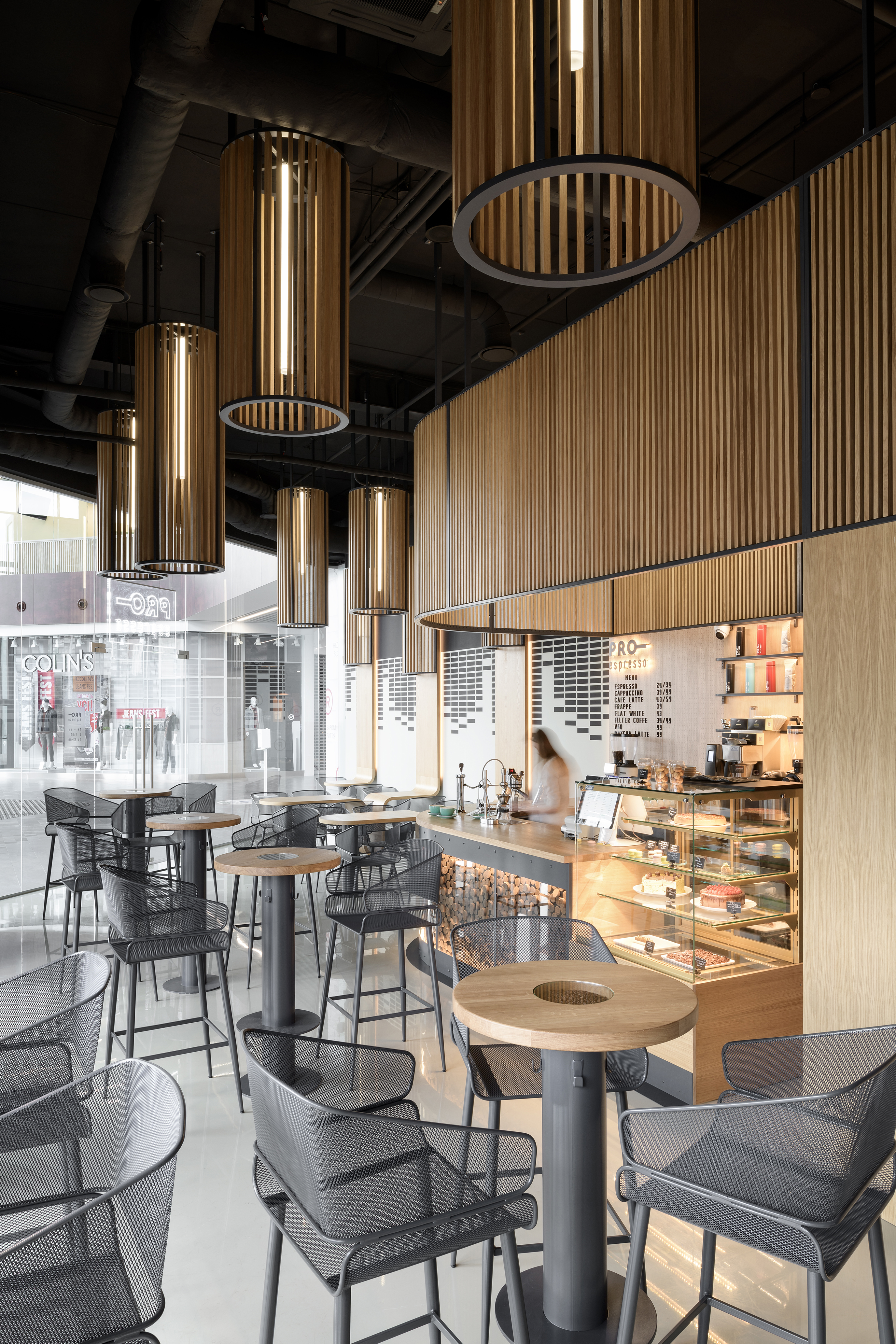 It was an intentional decision by the designers of the studio YUDIN Design to highlight the professionalism of the barista during the development phase of the interior design of PRO Espresso. The main feature of this coffee bar is the use by the barista of compact Modbar machines instead of the classic ones. Modbar is visually a single piston and a compact press, famous also for its professionalism and functionality. For the implementation of this project, natural oak, glass, metal and concrete were used to demonstrate the brand's position - naturalness and eco-friendly! In general terms, the style used by the designers Aleksandr and Vladimir Yudin can be delineated as Scandinavian futurism.