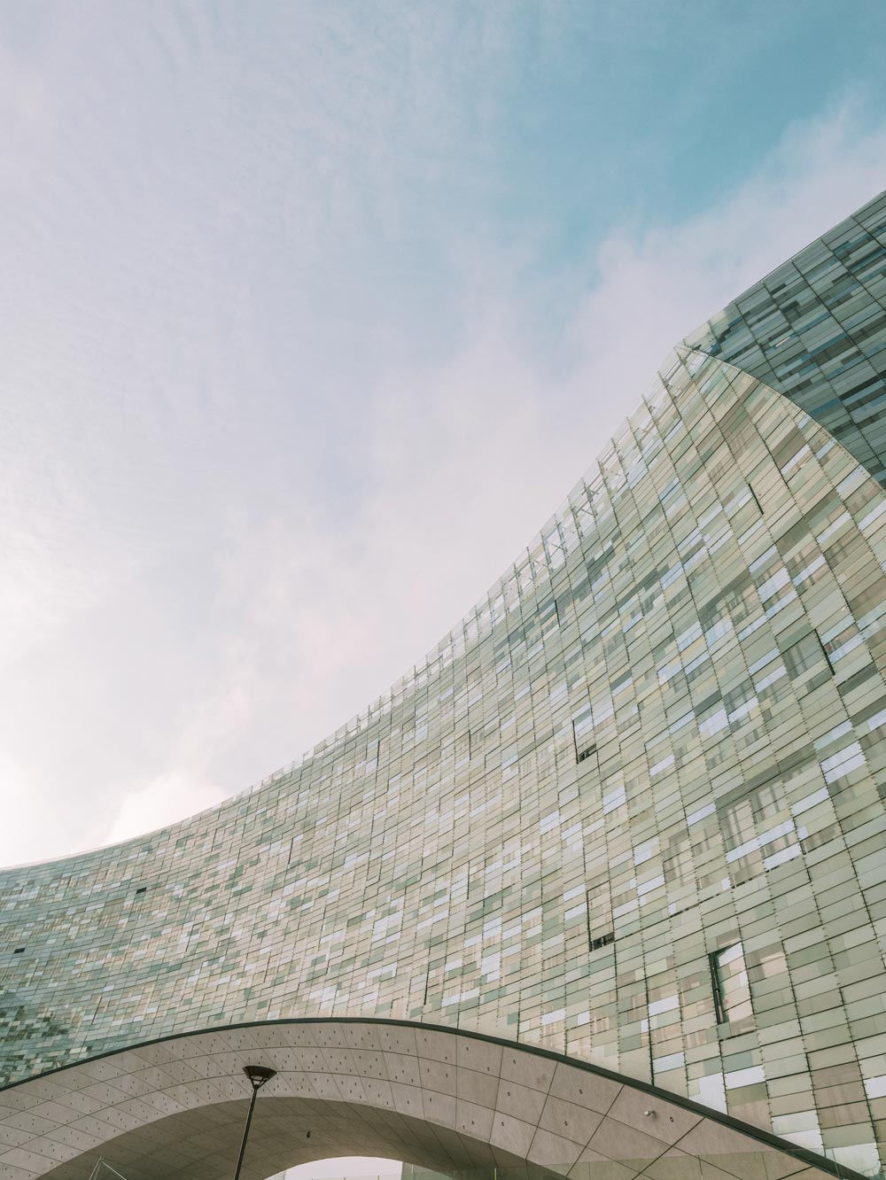 Sitting adjacent to the historic Gare d’Austerlitz train station, the project is a close neighbor to the historic Latin Quarter and the lushly planted gardens of the Jardin des Plantes. The concave form of the building bridges over the below-grade railyard, anchored on both sides with two seven-story cantilevering volumes held together by a complex network of steel. Three gestural «cuts» shape the building mass: the «sky cut» reveals the oblique surface of the solar-panel-clad roof; the «city cut» pulls the building back from the along its street-facing facade; and the «ground cut» carves out the underside of the bridging structure, enveloping the new public plaza together beneath its expansive arched form.