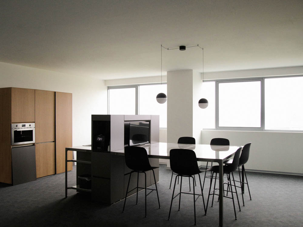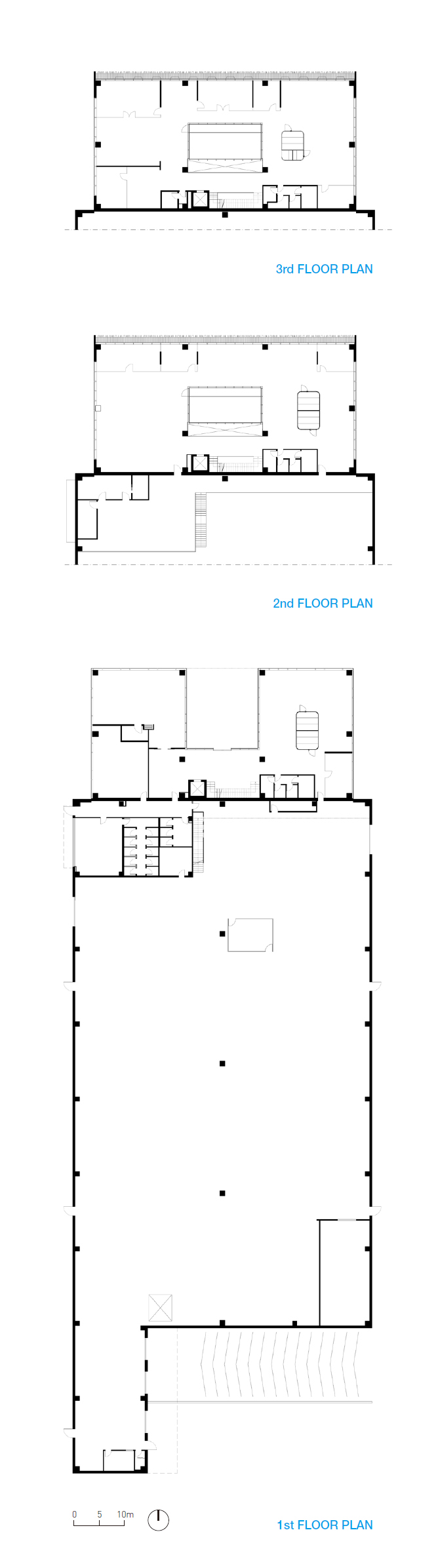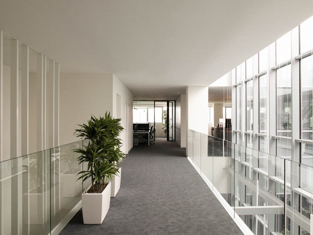 사무동은 내부 공간의 유리 파티오를 둘러싼 형태를 얻기 위해 중간이 비어있다. 1층에는 안뜰이 방문객을 맞이한다. 계단과 매달린 통로가 있는 수직 분배 시스템은 공간을 가볍고 밝게 만들어준다. 외부에는 1층 전체가 유리로 되어 있어 다른 2개 층을 시각적으로 분리한다. 새로운 매스를 생성하는 튀어나온 금속 차양으로 가려진 유리 파사드가 특징이며, 매스는 건물을 비물질화하는 듯한 패턴이 특징적이다. 사무실 내부는 워크스테이션이 공동 공간, 협업 구역, 전화 부스, 회의실 및 휴게실이 사이사이에 배치된 개방형 공간으로 설계되어 역동적이고 협업할 수 있는 환경을 조성한다.