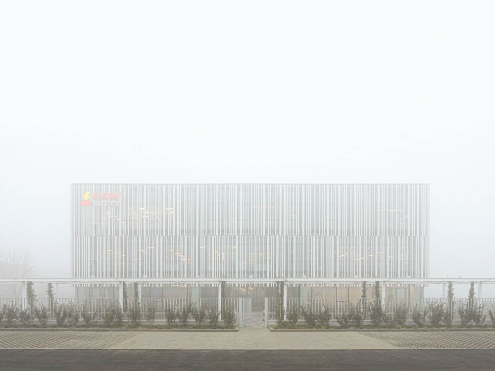플래시 배터리는 고급 제어 기능을 갖춘 리튬 배터리를 생산하는 신생 기업으로, 불과 몇 년 만에 60명의 직원과 1,400만 유로의 연간 매출액을 창출하며 빠르게 성장하고 있는 젊은 기업이다. 이 기업은 이탈리아 북부 레지오 에밀리아 지방에 새로운 본사 사옥을 세웠다. 빠르고 활발하게 성장을 뒷받침할 본사 사옥은 그들의 국제적 활동과 이탈리아에서 정체성 및 특성을 드러내는 새로운 행정, 생산 본부이다.