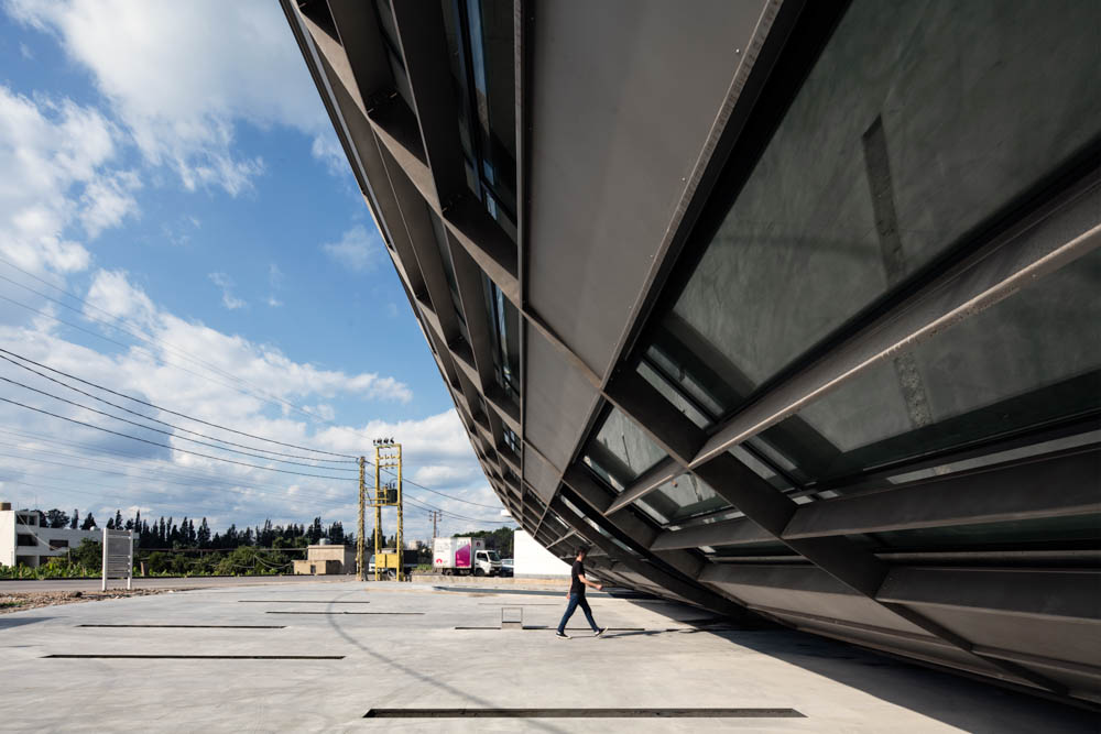 The headquarters establishes balance between maximum visual presence and minimal physical presence. The structure, with its post-tensioned roof and nine-meter cantilever, allows for a minimum building footprint. It thus liberates the ground floor from all structural elements, enabling a shaded public plaza as an open flexible space that can host various curatorial programs.
