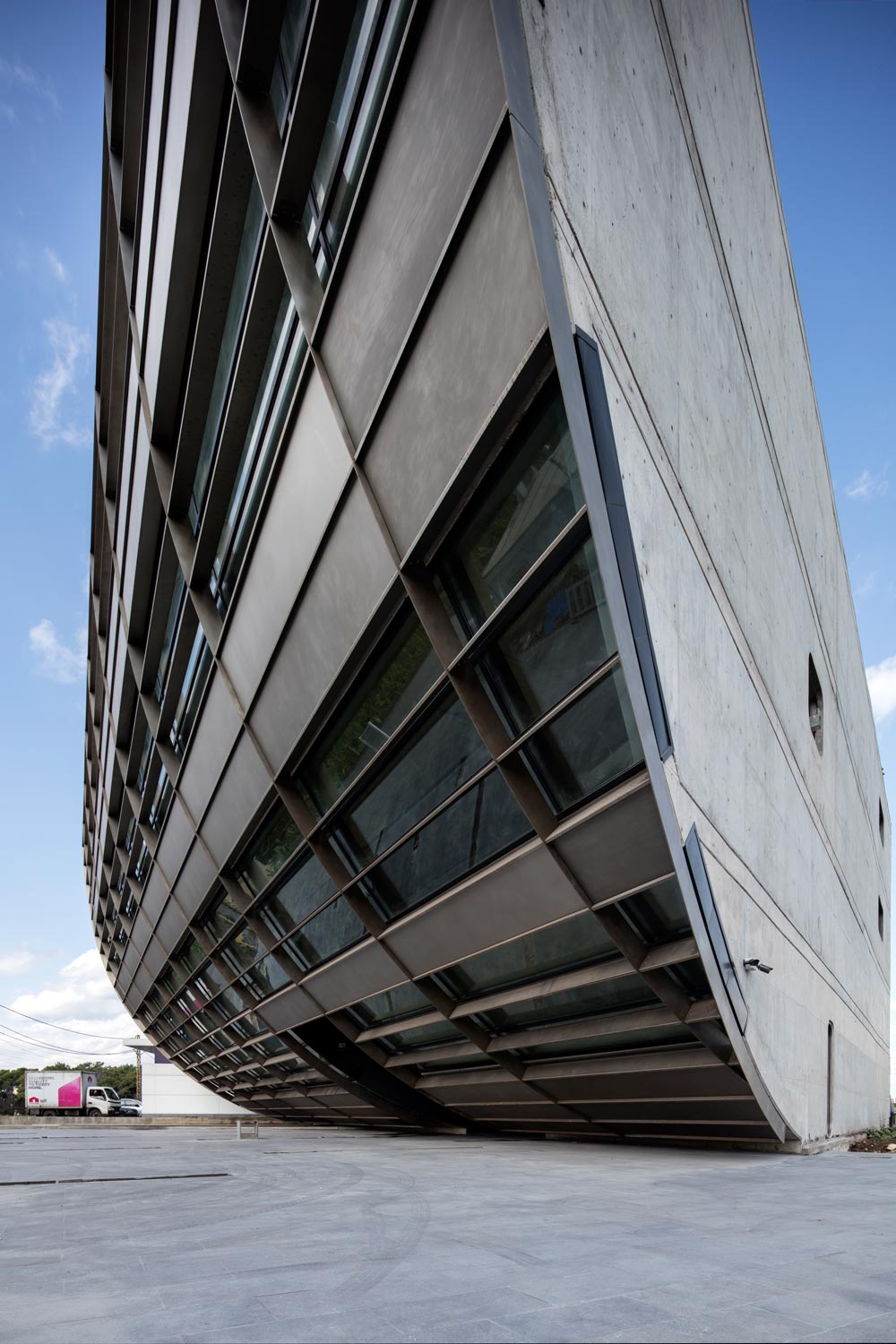 본사는 최대 시각적 존재와 최소 물리적 존재 간의 균형을 설정한다. 포스트텐션 지붕과 9m 캔틸레버가 있는 이 구조가 시공을 가능하게 만들었다. 1층은 구조적인 아름다움을 드러내며, 시민에게 1층을 열어주고 기획자가 다양한 프로그램을 개최할 수 있는 유연한 공간이다. 세 가지 주요 시각적 연결은 공공 공간의 역할을 더욱 강조하고 맥락과 지향점에 응답한다. 사다리꼴 안뜰은 다층 사무실과 중앙 순환 공간 사이에 시각적 연결을 만든다. 구부러진 메인 파사드는 광장을 가로질러 사무실과 야외 공간의 직접적인 시각적 대화를 만든다. 동향과 서향의 파사드에 있는 창문은 일조량을 줄이며 먼 풍경을 만든다. 건축 요소는 두 가지 역할을 수행한다. 그들은 대중의 참여를 향상시키는 동시에 지속 가능성을 옹호한다. 따라서 일조와 최적의 위도를 기준으로 각도가 지정된 캔틸레버 볼륨은 자체 그늘을 만든다. 남쪽을 향하면 겨울에는 태양열 증가를 최대화하고 여름에는 열 증가를 제한한다. 안뜰은 내부 자연광을 최대화하면서 수동적인 냉각 및 교차 환기를 가능하게 한다. 강철 스크린은 보안 게이트에 대한 고객의 요구를 대체하고 남향의 일조를 차단하는 곡선형 브리즈 솔레일 역할을 한다. 스킨은 건물의 시각적인 존재와 물리적 존재 사이의 상호 작용인 무거운 콘크리트 건물에 가벼움을 부여하면서 메인 파사드에 깊이를 더한다. 건축법은 공공 공간의 개념에 가장 도전적인 매개 변수였다. 기존 법률에 따르면 건물 아래에 위치한 실외 공간은 내부 공간으로 간주된다. 따라서 총 허용 구축 면적에서 공제된다. 밀폐된 공간이 아니라는 점을 감안하면 금전적 가치가 없다. 따라서 시민 및 지역 사회 공간의 개발은 재정적 낭비와 함께 법률에 의해 크게 제한받아 설계됐다.
