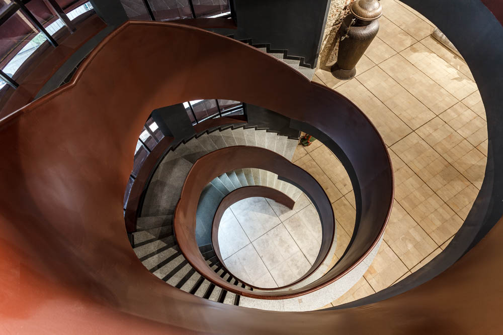 The design of the Rug Republic headquarters emerged from Akshat Bhatt’s thought. The idea is that there is no space, no water and no forest anymore for continuous production of new things. Thus, it makes sence to take something old and make it special, and it is fascinating to take something forgotten and to give it new life. The building is a reflection of the current time and creates a strong impression with the onlooker. It has been designed as a protective armour offering very little views of the outside, keeping the hostile and acrid environment away.
