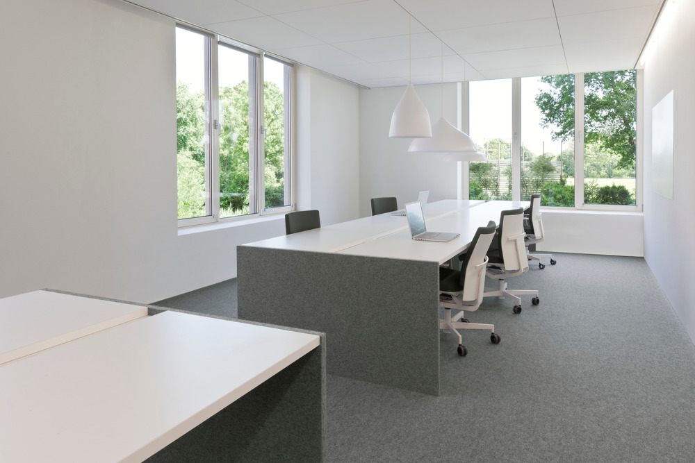Situated in a building where some structural parts could not be changed it was a challenge to integrate these elements in the design and become an addition to the whole. i29 searched for solutions to various problems which could be addressed by one grand gesture. At first a material which could be an alternative to the ceiling system, but also to cover and integrate structural parts like a big round staircase. Besides that, acoustics became a very important item, as the open spaces for stimulating creative interaction and optimal usage of space was required.