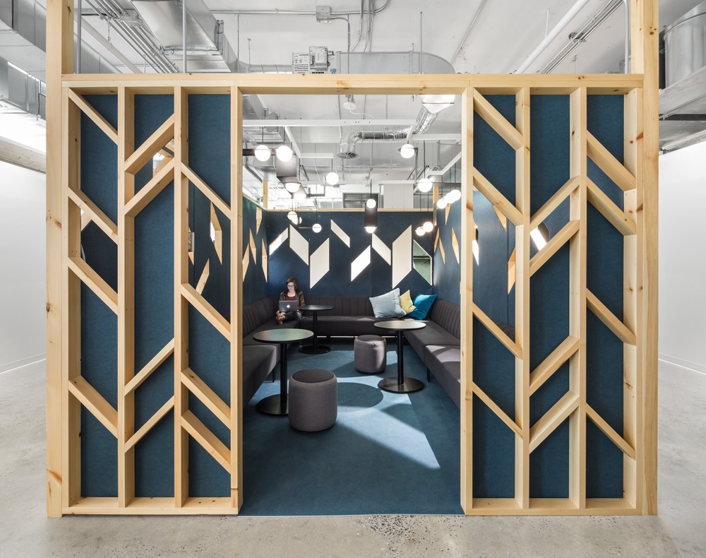 개방된 공간 전체에 배치된 다양한 구성의 수많은 큐브와 작은 알코브(Alcove: 벽면을 오목하게 하여 만든 공간)는 업무가 프라이버시 또는 고요함을 필요로 할때(비공식 회의, 고객 회의, 전화 통화, 특정 작업에 대한 집중 등)이 필요할 때 주변의 소란으로부터 벗어날 수 있게 한다. 그러나 이 폐쇄된 작업 공간에는 폴리카보네이트 또는 유리로 된 투명 파티션이 있기 때문에 커뮤니티와의 연결은 중단되지 않다. 이러한 전략적 공간은 건축적인 볼륨을 조각하고 로프트의 인상적인 광대한 규모를 보다 인간적인 규모로 만드는 것 외에도, 공간에 역동적인 시각적 효과를 창출하면서 이동의 자유를 최적화하고자 하는 클라이언트의 요구 사항을 충족시켜준다.