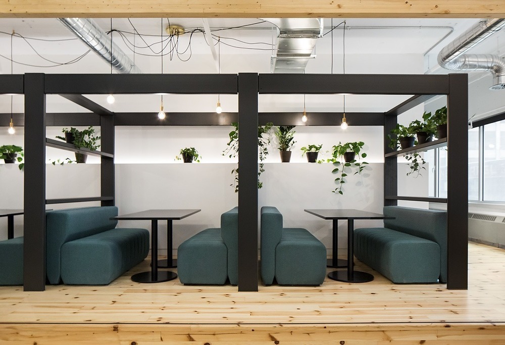 클라이언트의 요구사항은 들어가는 즉시 긍정적인 분위기를 느낄 수 있는 이질적이며 살아 있는 통합된 환경을 만들어 달라는 것이었다. 고전적인 Mile-End 산업 건물에 위치한 이 건물은 3면에서 일광에 접근할 수 있을 뿐만 아니라 광택이 나는 콘크리트 바닥이 아름다운 효과를 주는 이점이 있었다. 제약 조건은 매우 빡빡한 일정과 높은 천장 아래에 줄지어 있는 산업용 덕트였다.