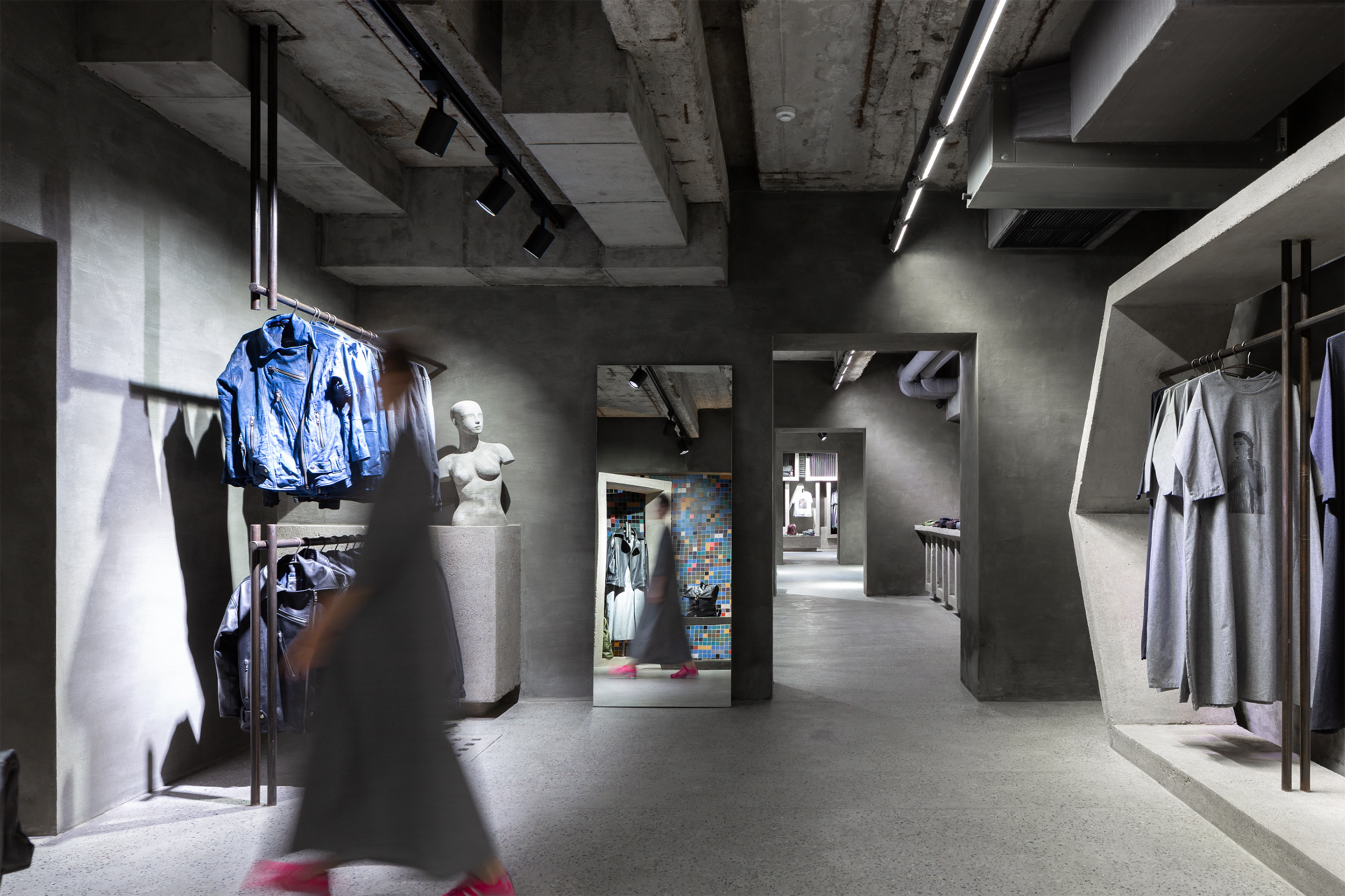 Kanishka 의류 및 액세서리 브랜드 매장은 우즈베키스탄의 타슈켄트 중심에 있는 9층짜리 주거용 건물 지하에 있다. 매장은 파이프가 많고 창문이 없는 규칙적인 레이아웃을 가지고 있다.