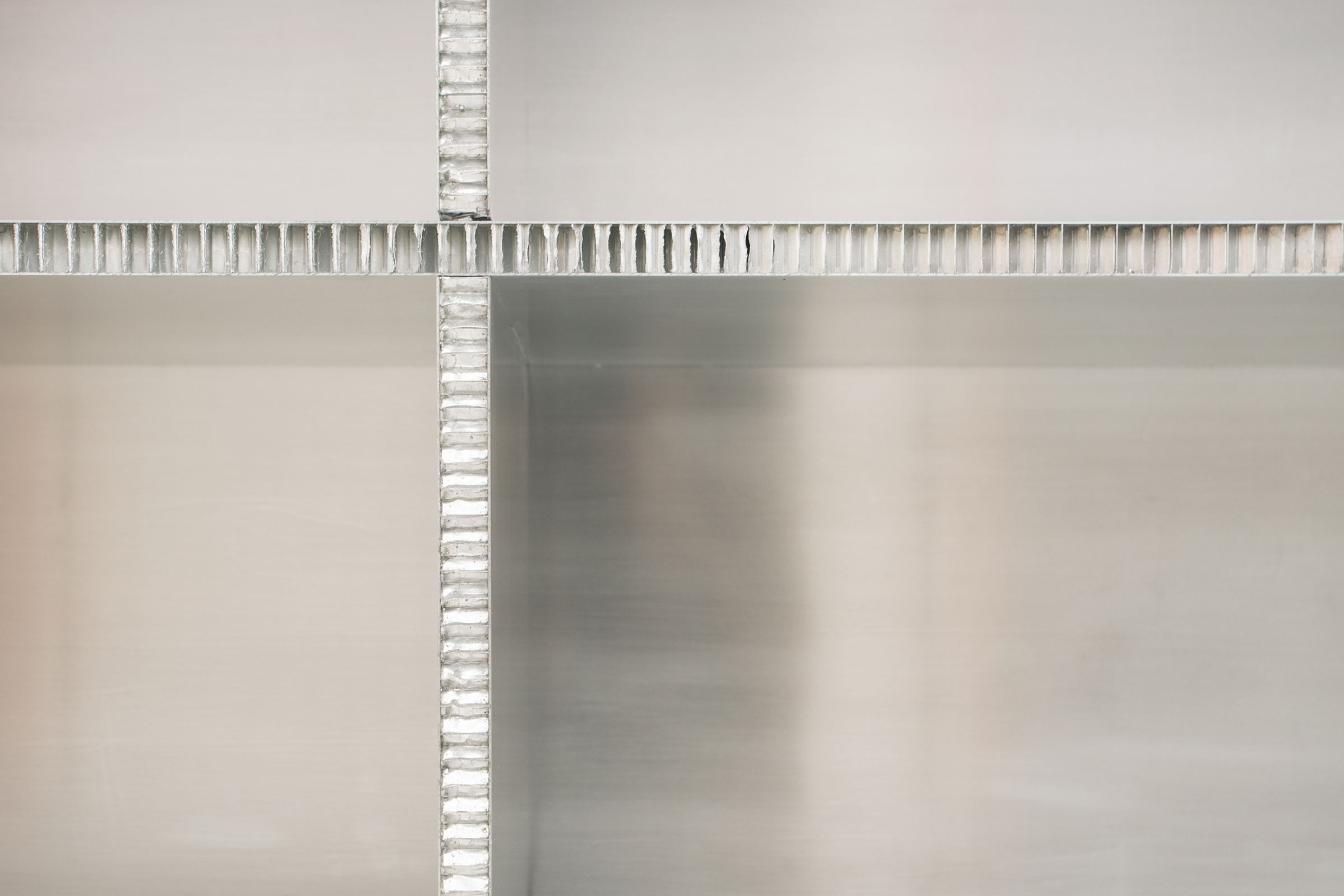 메자닌 층은 좀 더 친밀한 공간으로 설계됐다. 회반죽이나 나무 바닥의 벽 표면과 같은 전통적인 재료와 알루미늄과 거울로 덮인 피팅룸이나 알루코어 패널로 만들어진 의류 전시와 같은 현대적인 재료를 조화롭게 사용했으며, 모두 1층과 연속된다.
