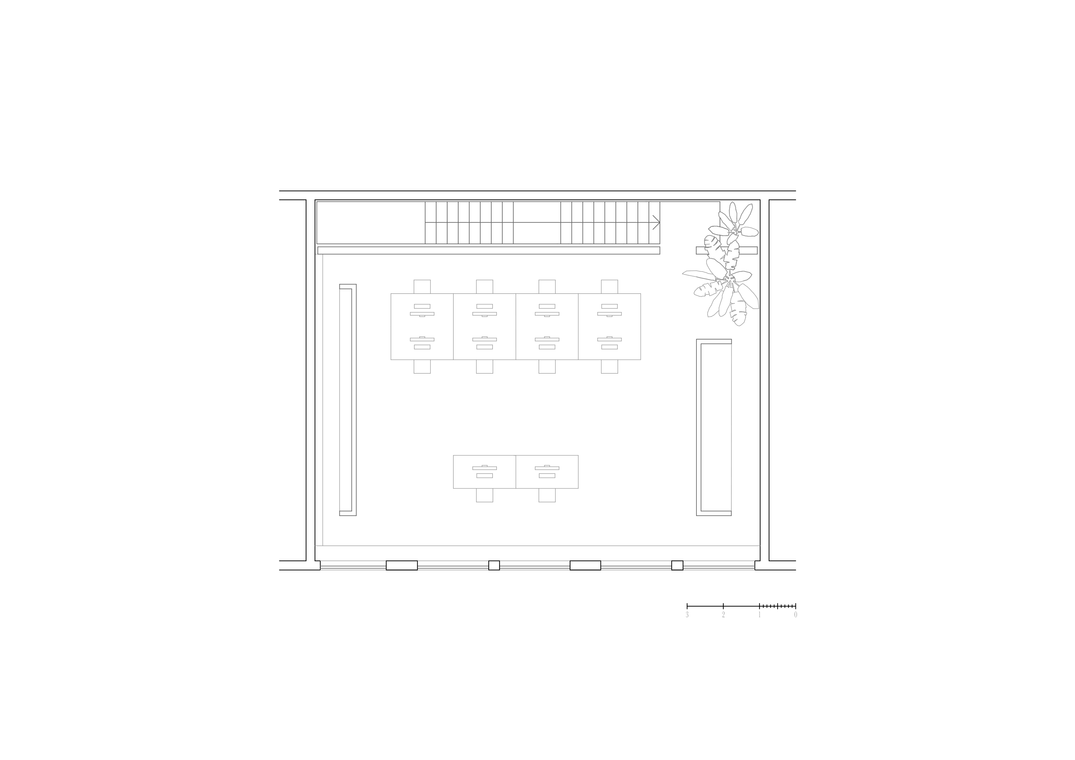 건물은 두 개의 열린 공간으로 발전했다. 1층은 회의, 전시 그리고 행사에 사용되는 공공 공간인 반면, 2층은 실제 작업 공간이다.