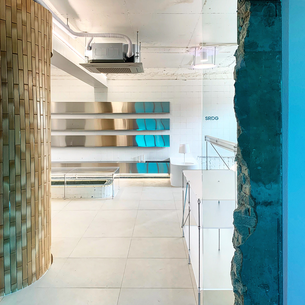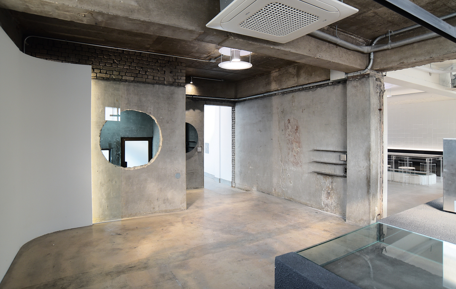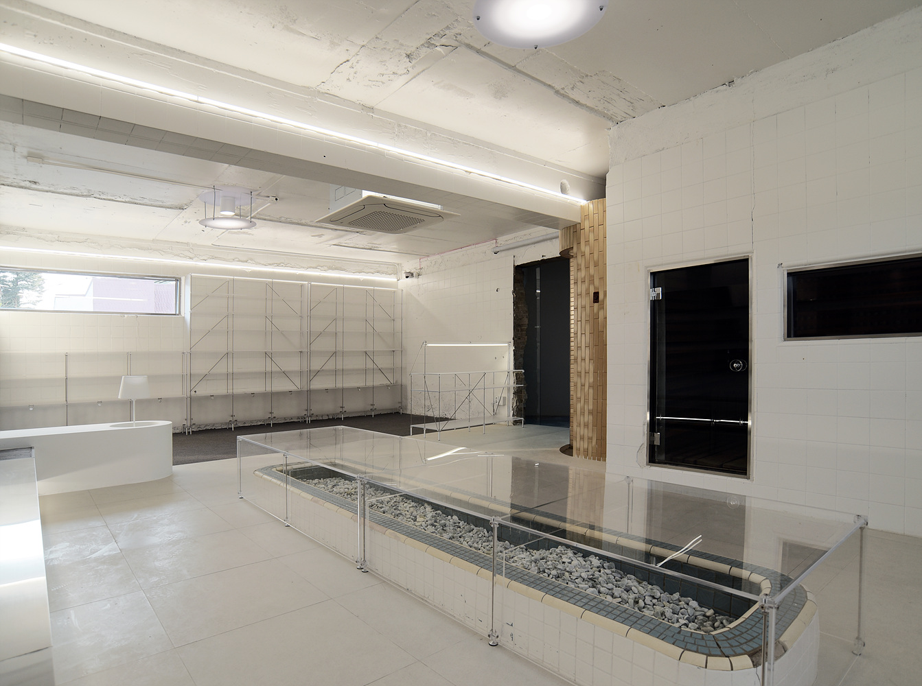 Exterior of the building has explored a way to maintain old bathhouse’s form and remain the structure as much as possible so that experience of entering a door to [Multi Layer + Spectrum] dimension with modern materials and direction.