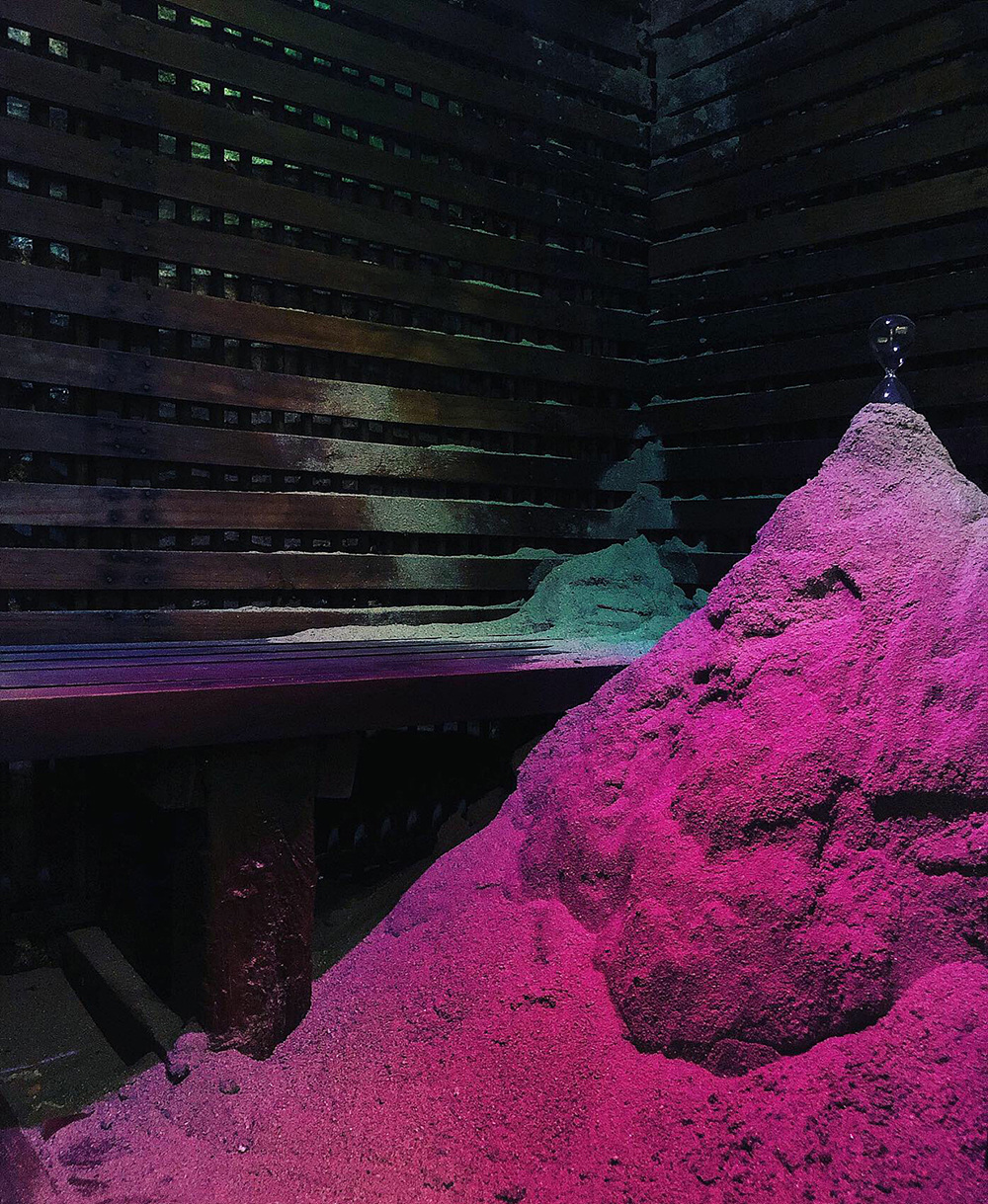 Senses are existing not only in memories but also the space. It’s a sauna which is the space of past and symbolic space of the bathhouse. Though an hourglass which has been supported sauna space silently is forgotten to the past memories but an object which perdures though passing through past and present inside inherent memories is the hourglass. Sand that represents the years that have passed. I hope that the long value of space will be shared with the atmosphere of objects and space.