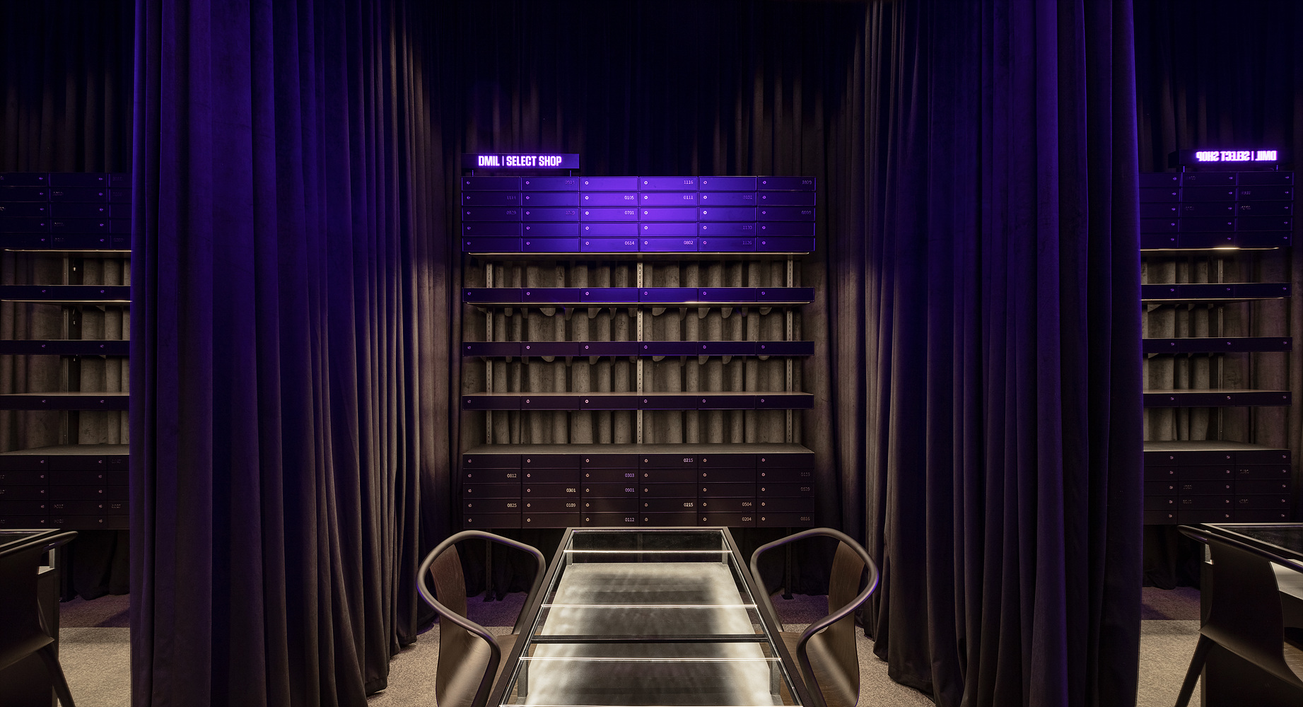 VIP 손님을 위한 셀렉 샵이다. DMIL과 연관된 기존 뷰티 브랜드제품을 시현하거나 셀렉 할 수 있다. 또한 DMIL 자체 브랜드(PB상품)의 쇼룸 겸 비즈니스가 이루어지는 공간이기도 하다. VIP 손님을 위한 컨셉이기 때문에 귀중한 물건을 담은 ‘금고’의 컨셉으로 공간을 기획했다. 가구는 테이블이던 선반이던 금고의 모양을 하고 있으며 금고에 새겨진 넘버링 또한 의미있는 숫자로 회사의 기념일이거나 구성원들의 생일로 되어있다.