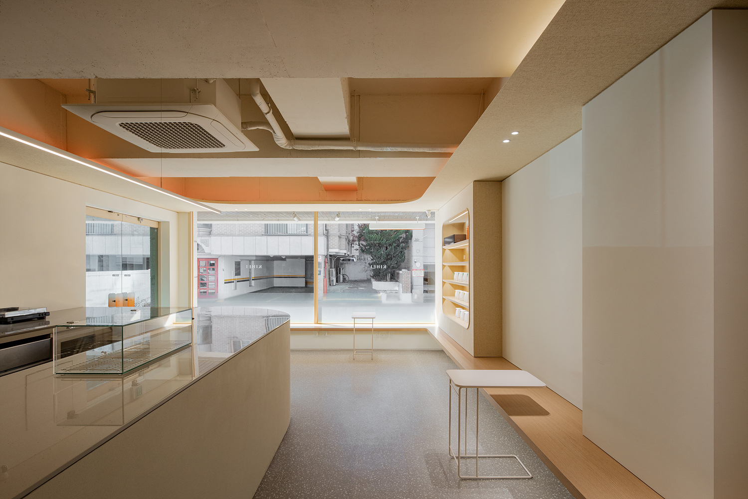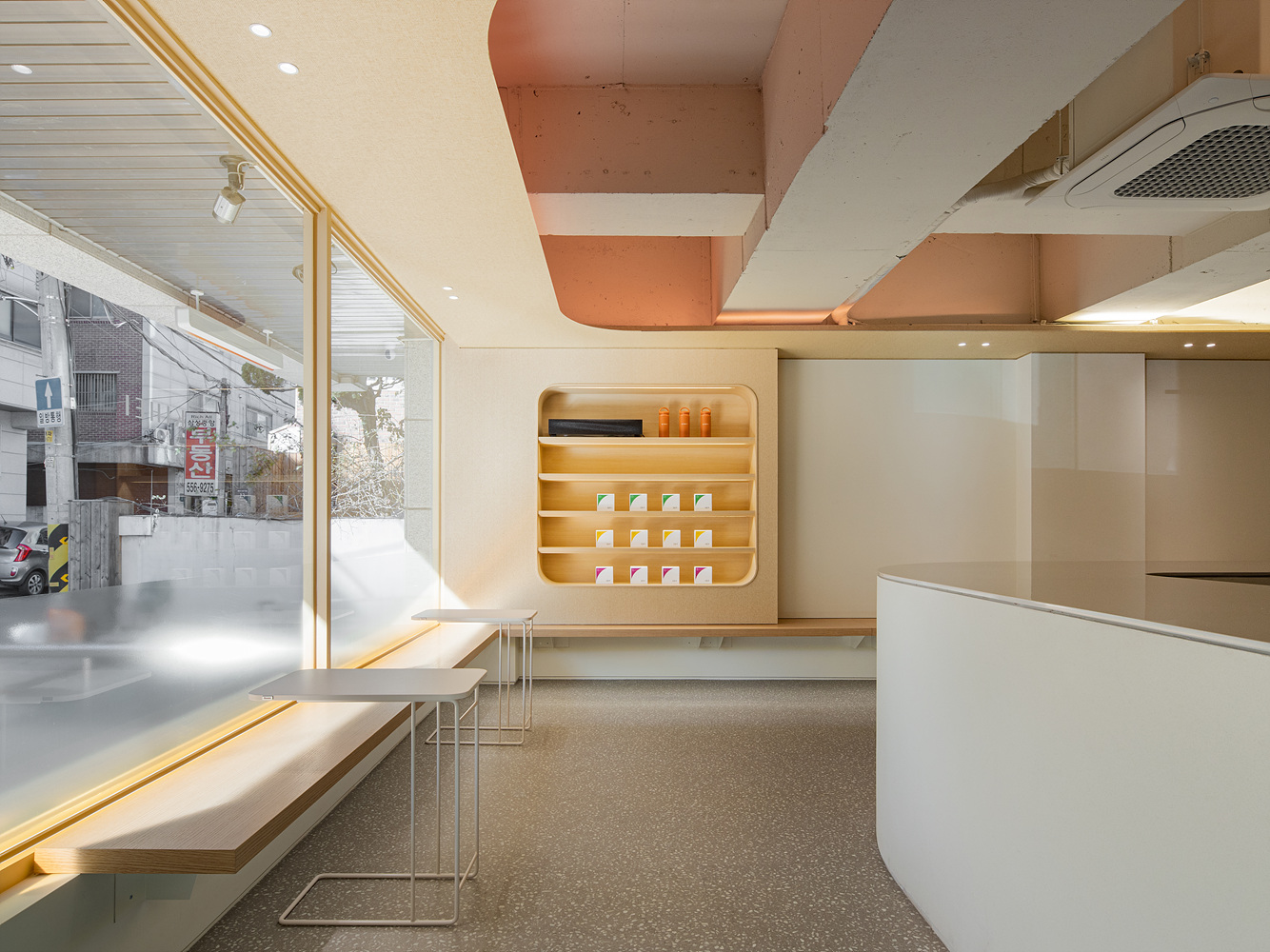 좁고 기다란 공간으로 좌석과 길이방향으로 입구까지 둘러 외부까지도 연결되도록 하였다. BAR 끝부분에서는 드립 커피 쇼잉을 볼 수 있으며 모래와 작은 조약돌을 배치해 작은 해변을 연상시키는 장치를 두었다.