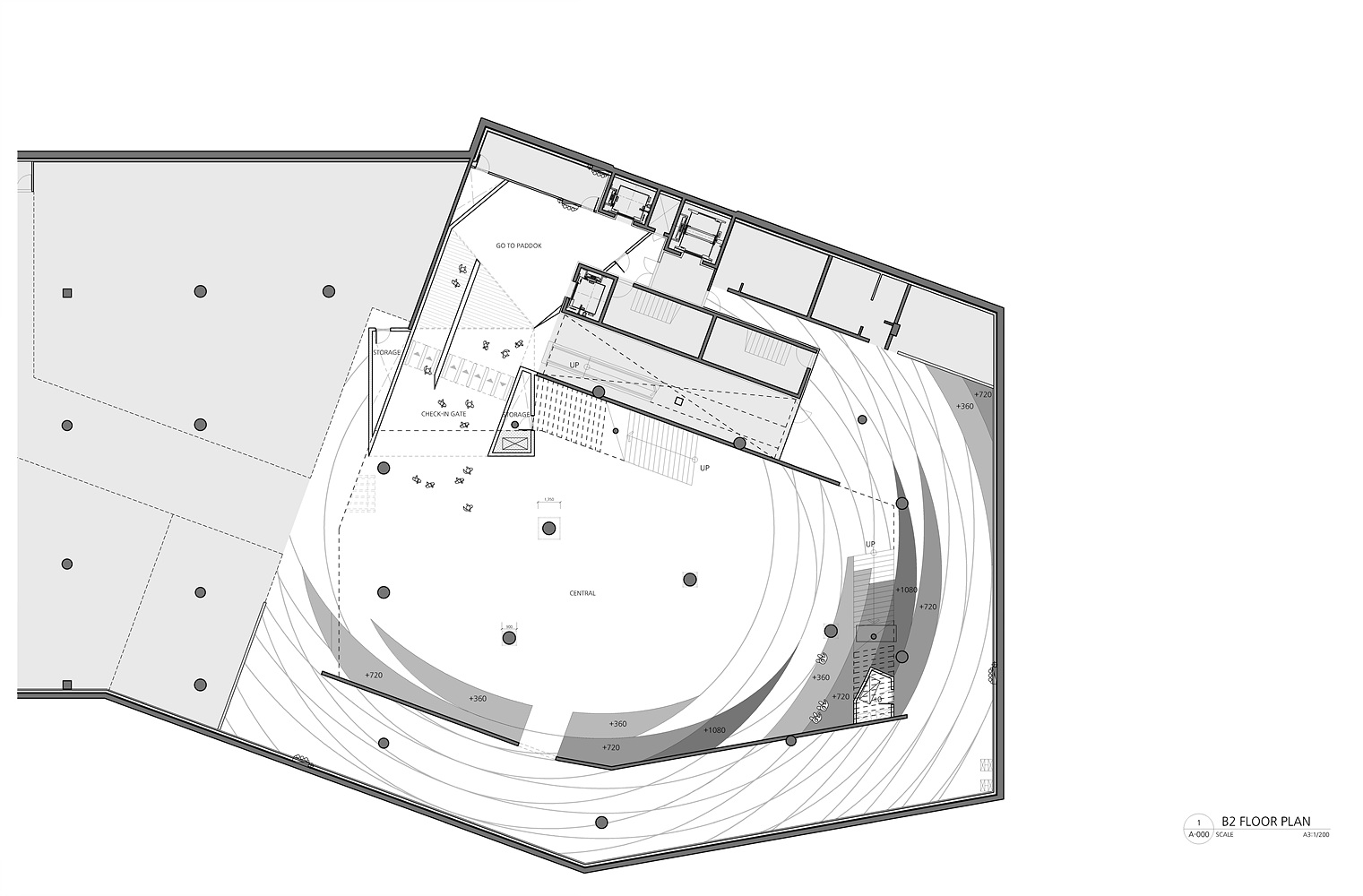 2층 PADDOCK은 마스터 전용라운지로 더 빠른 속도감을 즐기는 마스터 고객들을 위하여 탑승 직전에 느끼는 긴장감이 간접적으로 전달될 수 있도록 실제 레이싱 차량에 적용된 전용 시트가 설치된 시뮬레이션 휴게공간을 구성하였다. 천정에는 트랙을 연상시키는 형태의 라인 라이팅 구조물을 설치하여 속도감을 표현하고, 마스터 고객이 개인별로 기록에 대한 랭킹 및 메모리얼 데이터를 볼 수 있는 미디어 장치를 설치하여 VIP 고객들을 위한 ‘Race981’ 안의 차별화 된 공간을 만들고자 했다.
