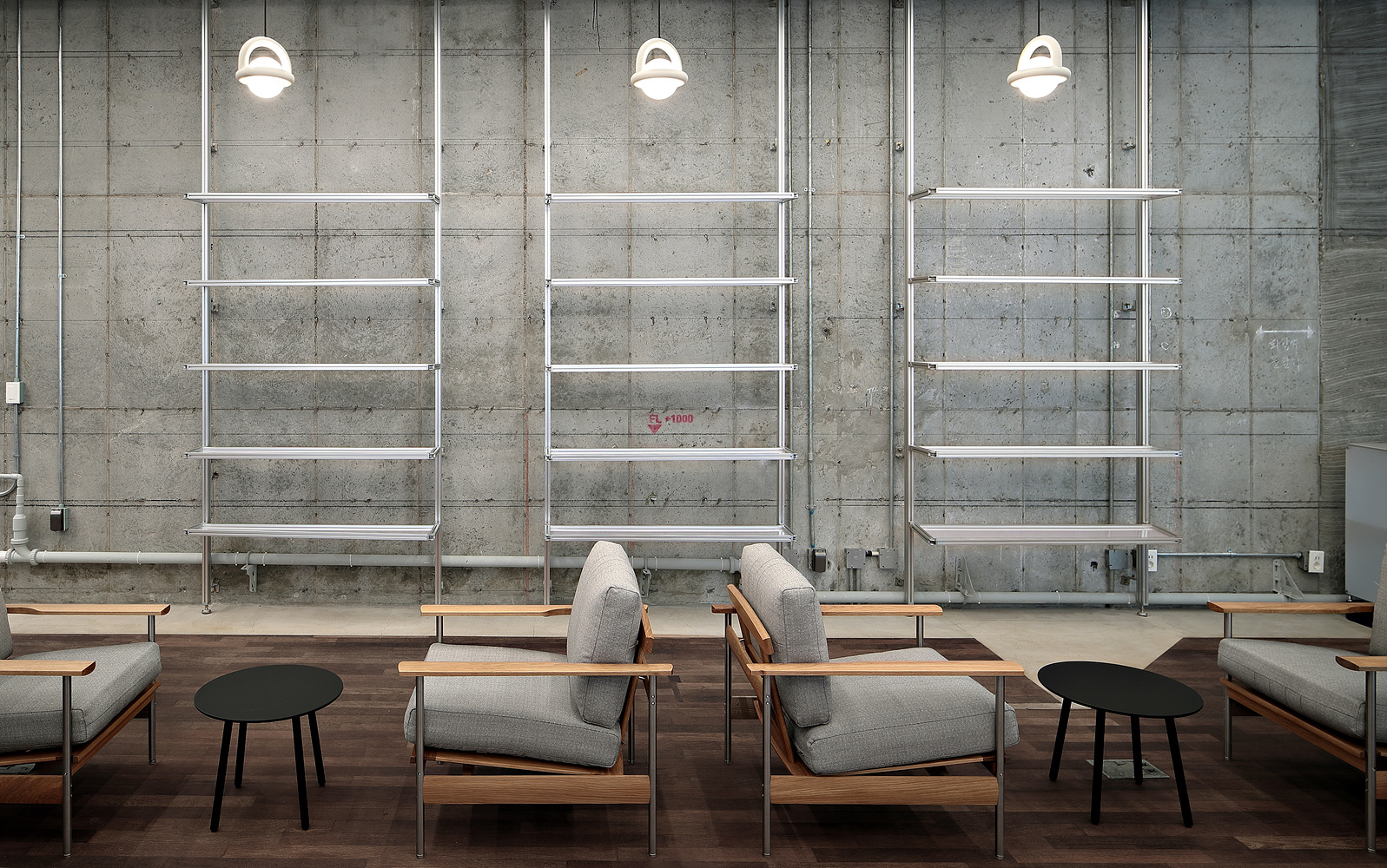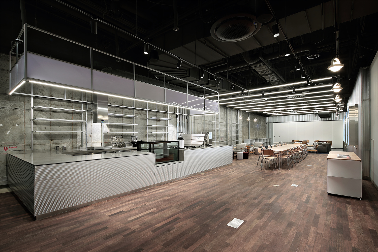 다양한 프로그램과 기획전시에 대응할 수 있도록 고정적인 설치 요소를 최소화 한 디자인을 중심으로 24m 가 넘는 양쪽 벽에는 제작, 시공시 폐기물이 적은 경량 소재의 이동가능한 모듈형 선반을 구성하고 동일한 규격의 모듈형 또는 적충형 테이블, 의자를 자유롭게 배치 할 수 있도록 하여 공간의 기능을 극대화 시켰습니다. 또한 최소한의 재료를 사용하여 조립하는 방식의 ‘Buildweller’의 가구를 활용하여 자원의 낭비를 최소화 하고 서울 브랜드의 가구들을 우선 사용 하여 공간을 채울 수 있도록 연출 했습니다.