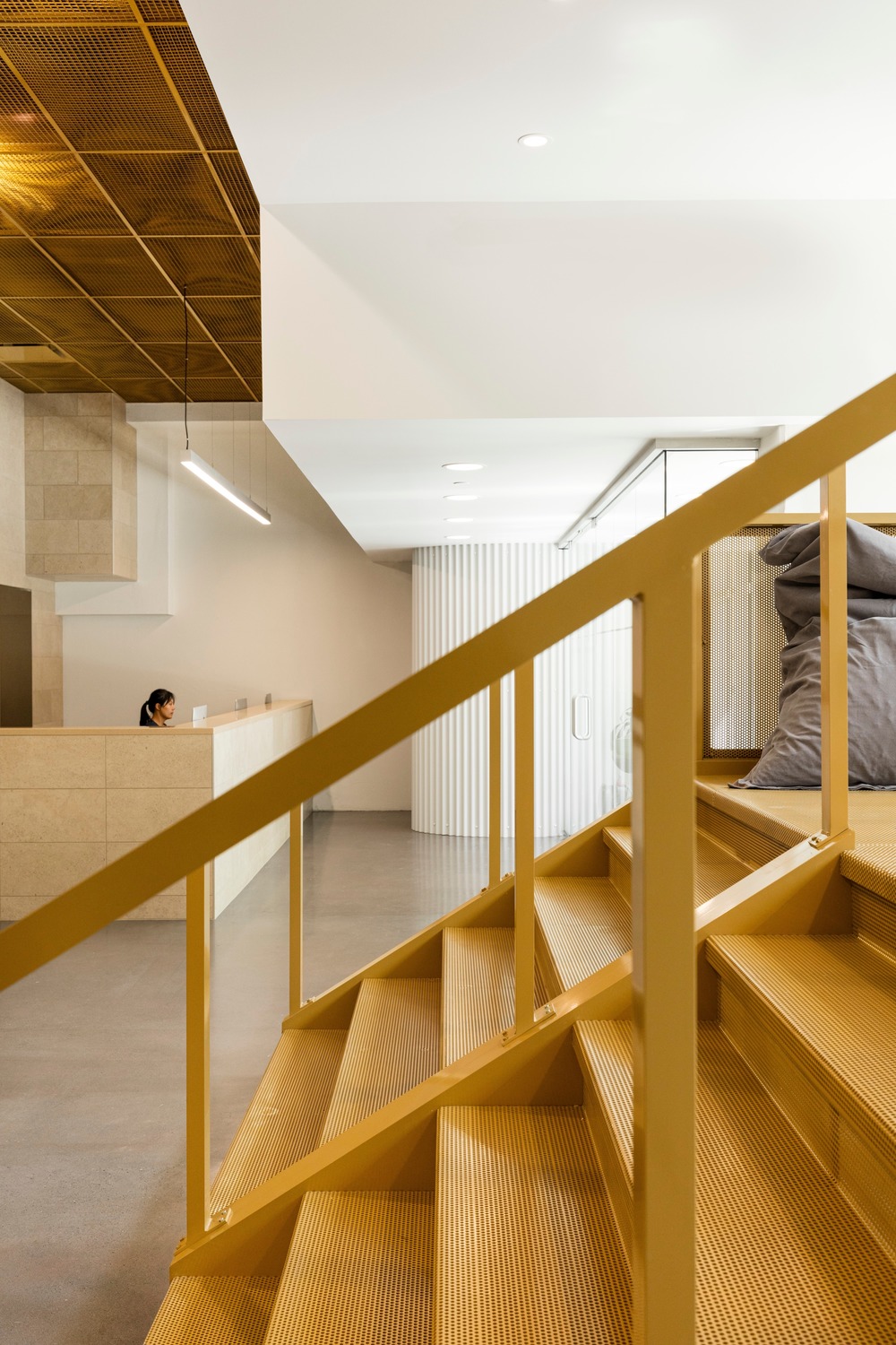 Go Orthodontists는 각자 다른 일을 하는데 이 공간은 그것을 반영하고 있다. 기능적 특성을 넘어 공간의 배치와 물질성은 의료 공간의 불안을 유발하는 어떤 암시도 없이 긍정적인 경험을 만들어 내는 데 영향을 미친다. 비개방형 공간, 반개방형 공간, 개방형 공간을 혼합하여 환자를 볼 때 유연성을 허용한다. 모든 덕트를 골드 메쉬 패널로 감춤으로써 밀폐된 부분뿐만 아니라 전체 개방된 공간에서도 통풍이 잘 되는 경량성을 느낄 수 있다.