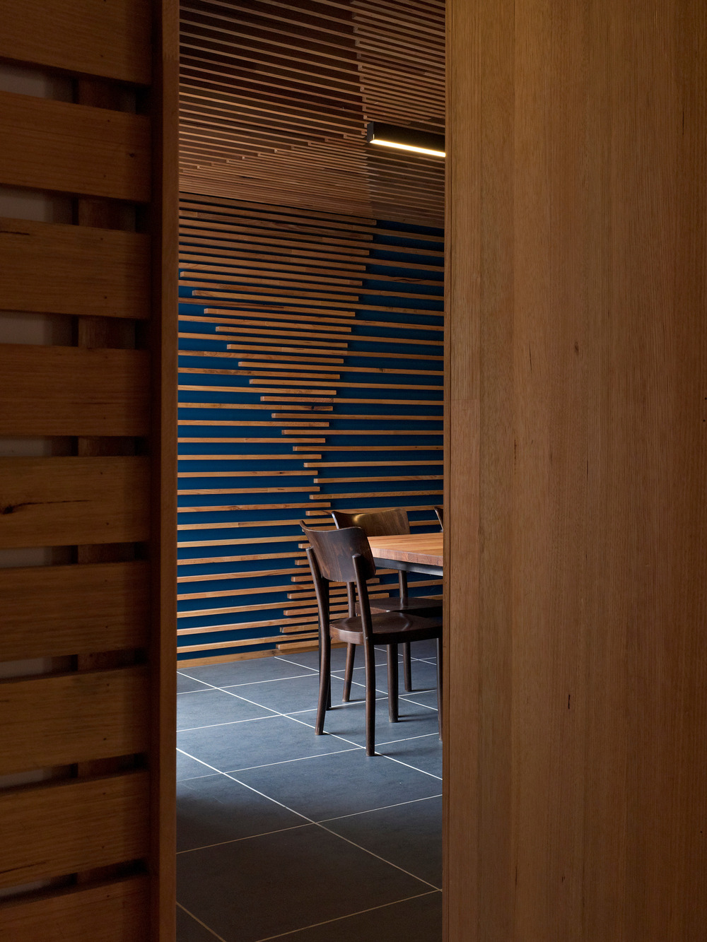 In close collaboration with clients Adam Ferrante (Rose St Artists Market) and Mark Grixti (The European / Supper Club) architects SMLWRLD set out to discover a new relationship between the dining spaces and what is consumed within them. This search lead to the image of a French wine press, a rough crucible refining valuable contents, an inspiration that translated into detailed timber expressions of gentle force, careful layering of colour and depth of texture. Material choices focused on the combined warmth of timber and burnished brass, elsewhere blackened steel indicates structural changes made in the spirit of a Victorian industrial history. Woven through the network of intimate and connected dining spaces, blue surfaces create a circling moat that separates old from new, privileging the history of this unique Melbourne building.