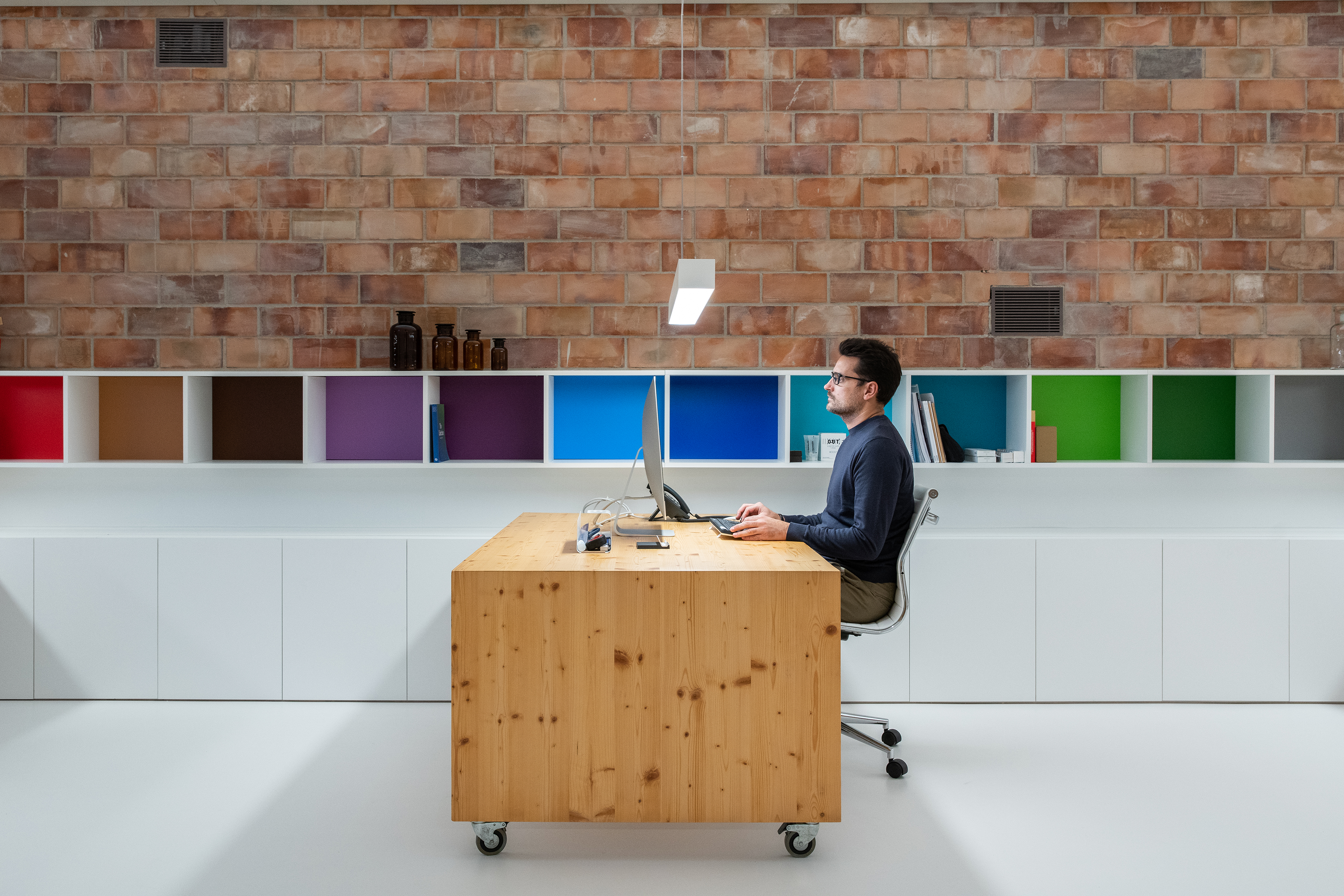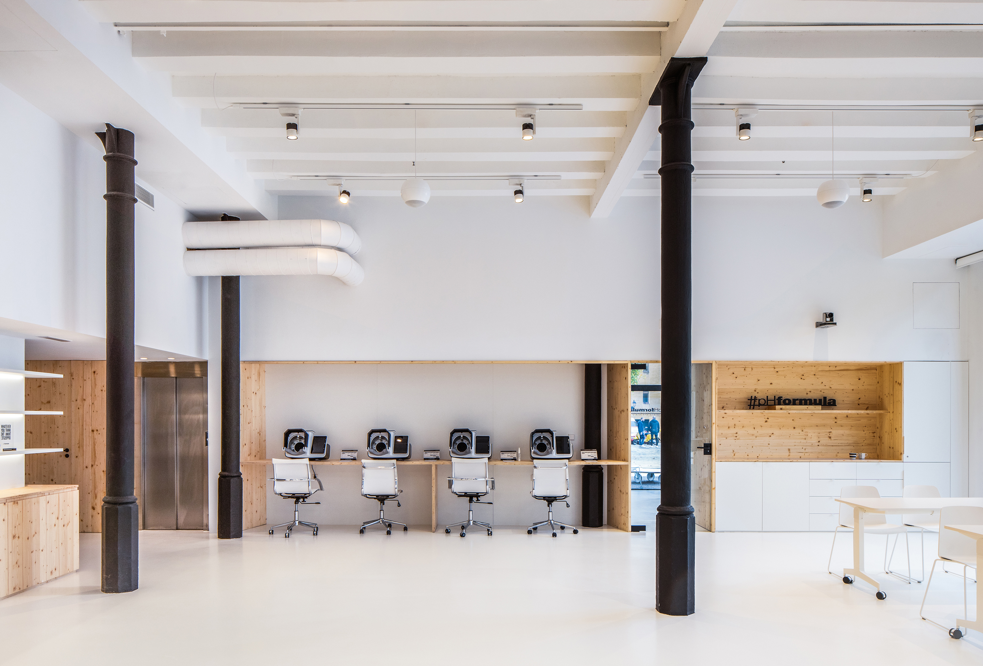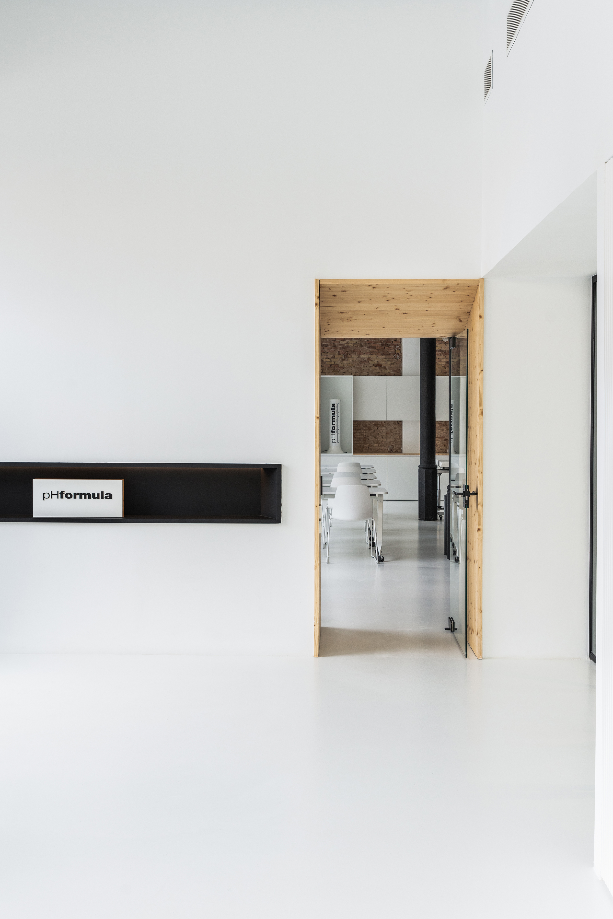 Comerç 거리와 Ribera 거리 사이에 있는 1904년에 지어진 모퉁이 건물의 1층과 지하에는 피부과 회사의 새 본사가 있다. 회사가 직원 교육에 강한 의지를 갖고 있다는 점을 고려하면 본사에는 교육 구역이 필요했다. 거리에서 접근할 수 있는 1층은 홀과 이러한 형성 영역의 두 스코프 사이에 분배된다. 공간 사이의 구분은 거주 가능한 가구의 벽을 포함하고 필요한 프로그램과 설치를 포함하는 것이다. 세라믹 벽돌로 만들어진 세 개의 인접한 직사각형 바닥 금고는 지하 바닥과 동일하다. 이 지하층은 큰 테이블이 있는 큰 중앙 공간을 가로질러 다시 원래의 시각적 연결을 갖는 생각에서 나온 것이다. 주요 비즈니스 활동뿐만 아니라 일상적인 회사 루틴의 교차점과 상호작용이 있는 곳이다. 다른 두 개의 금고는 평행하게 분포되어 있고, 모든 관점에서 볼 때 지하실 전체를 인식하는 것이 가능하다. 원래 구조와 재발견된 재료 모두 이 지역의 재건에 고려되어 기존의 공간 조건과 시간이 지남에 따라 수집된 유산을 향상시켰다. 공간을 재건하는 것이 프로젝트의 주요 의도이며, 처음부터 기존의 세 가지 전제가 고려됐다.