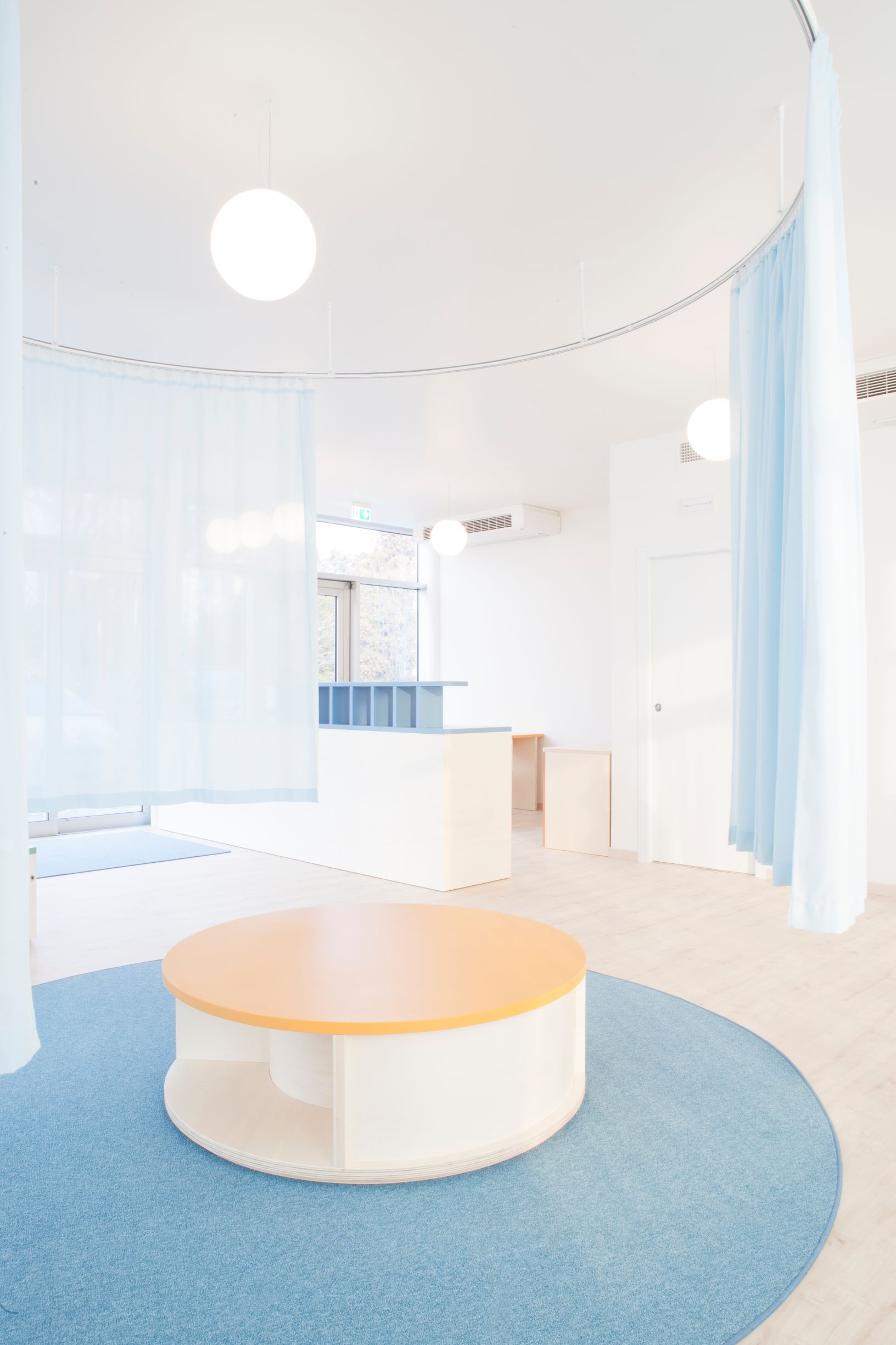 The layout of the internal space aims to create a light and relaxing atmosphere, where young patients could feel comfortable while waiting for their appointment.