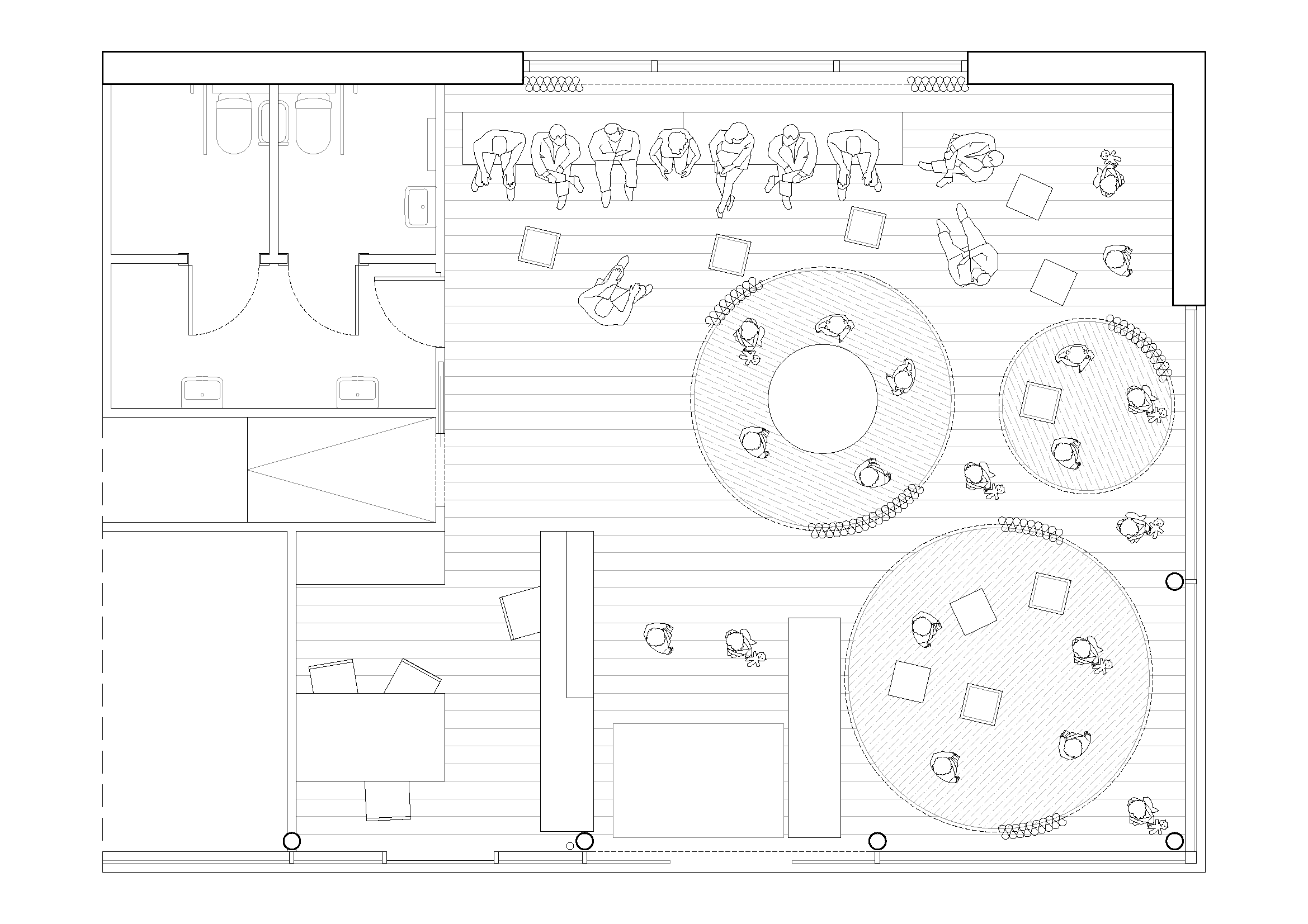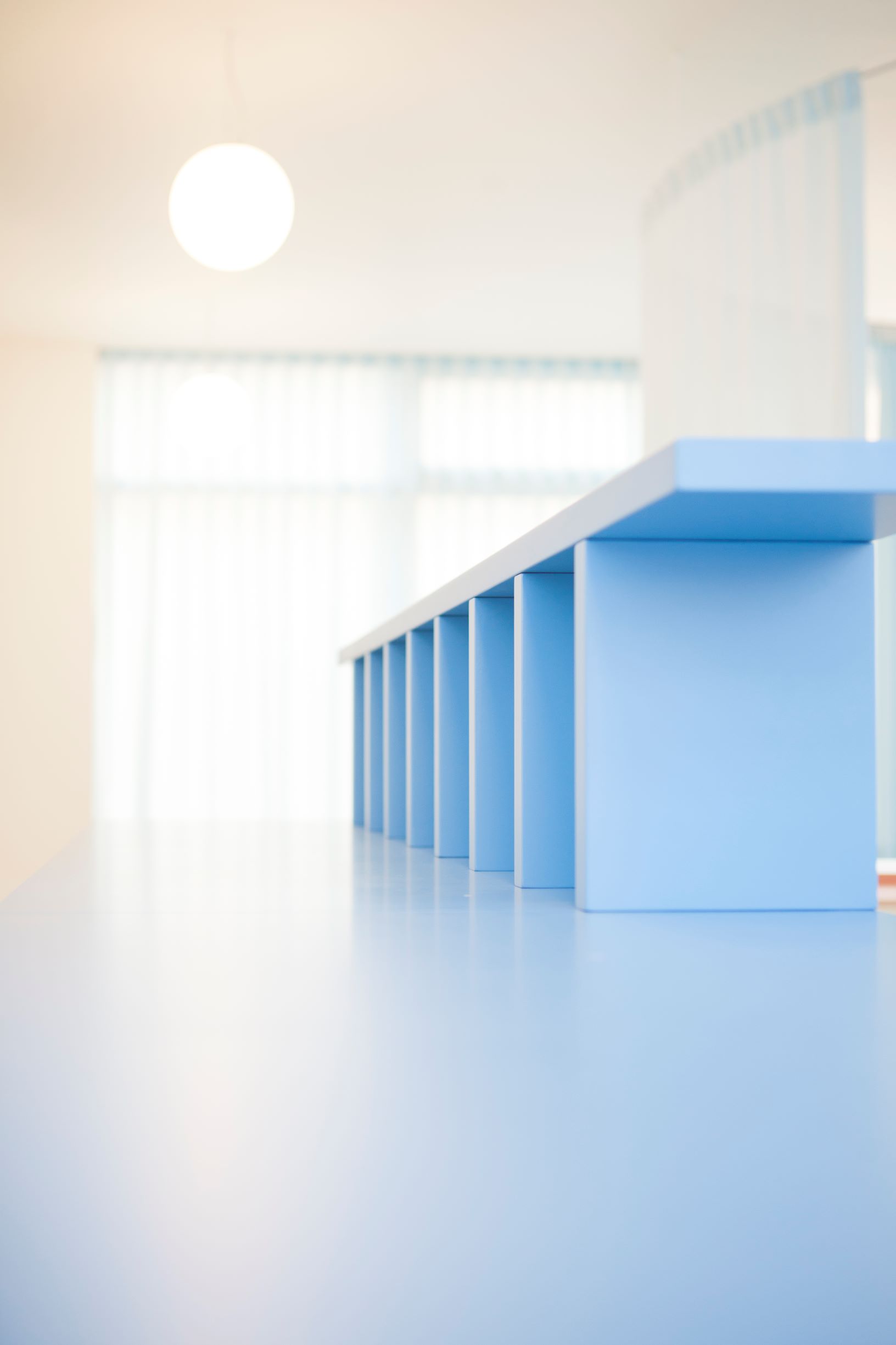 내부 공간의 배치는 어린 환자들이 예약을 기다리는 동안 편안함을 느낄 수 있는 가볍고 편안한 분위기를 만드는 것을 목표로 한다.