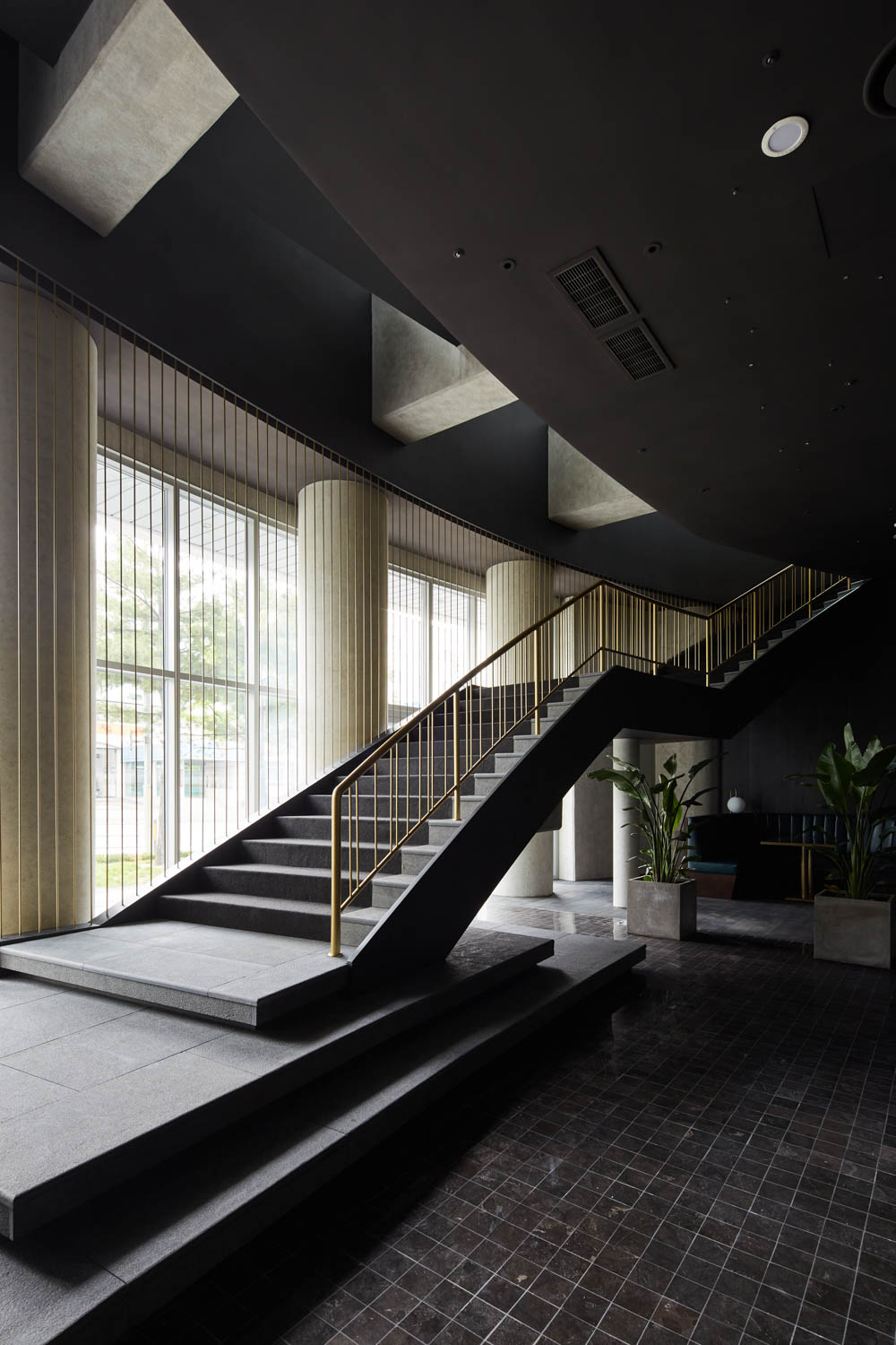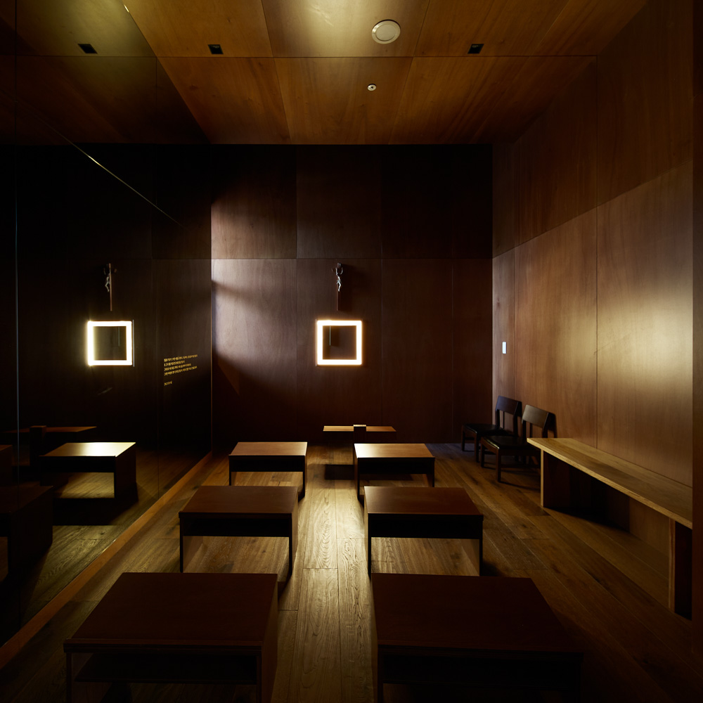 Breaking away from the solemnity and authoritative elements seen in traditional religious architecture spaces, you can feel her in the space by repeatedly looking at the image of Katarina, the young friend that this space wants to commemorate, and her childhood letters and videos. I started designing with hope. From the unchanging faith of the parents who sent their daughter whom they loved so much first, I thought that what was visible was not everything, and that what was more important than the traditional proportions and left-right symmetry was the invisible religious faith and the resulting words and actions. It was created by reorganizing the space so that it completely violated the norms of all religious facilities, but felt proportionally beautiful. As an element that captures the unconventional feeling of space that can be radical, I installed the work Yongrae Kwon in the main hall, the work of artist Hyesun Hwang on the four pillars in the reception area, and the work of artist Seunghee Sohn in the large window in front of the main hall. Through the entire skylight that illuminates the main hall and small sanctuary, we tried to feel the unchanging and unchanging omnipotence of God in every space. In a small oval space, which is a support facility, a series of moving lines connecting the roof, the third floor, the main bridal space, and the main hall will show that it is a space where faith in the Trinity is completed with the external double skin.