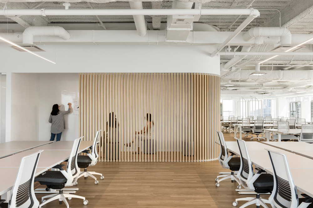 최대 283명의 직원을 수용할 수 있는 회의실은 물론 스포츠 공간, 카페테리아, 직원 사물함 및 브레인스토밍 공간을 통합하면서 가능한 한 벽이 적은 환경을 설계해 달라는 건축주의 요구에 부합하는 환경을 구축하기 위해 창의적인 아이디어를 필요로 했다. 이 아이디어는 사회기반시설의 사용과 근로자들의 요구 등 지속 가능성의 관점에서 개발을 시키는 것이었다. 이를 달성하기 위해 회의실은 건물의 중앙 코어를 중심으로 회전하여 자연 채광이 작업공간 및 기타 비공식적인 협업 공간을 가득 채울 수 있었다. 방음 유리 칸막이는 바닥의 창을 둘러싸 직원에게 개인 작업 공간을 제공한다. 직원 간의 연결을 위해 한 층에서 다른 층으로 쉽게 접근할 수 있는 바닥 개구부를 설치했다. 27층으로 올라가면서 고객들에게 도시의 훨씬 더 인상적인 전망을 제공한다.